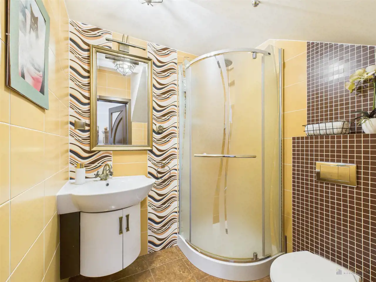 - łazienka z wc i kabiną prysznicową (3,38 m2).