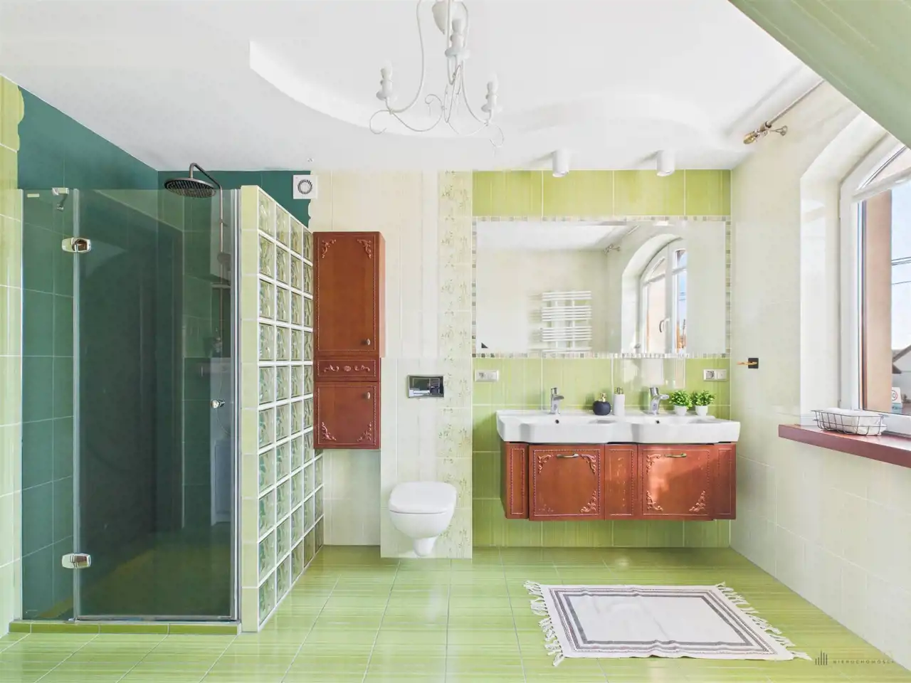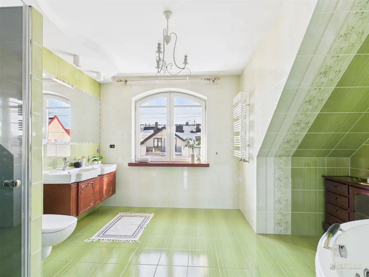 - łazienka z wc, kabiną prysznicową oraz narożną wanną (11,90 m2)
