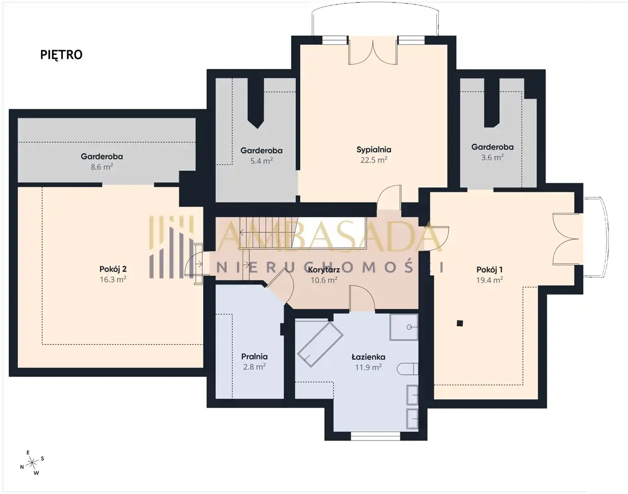 - 2 niezależne sypialnie z własnymi garderobami (19,43 + 3,59 m2 oraz 16,25 + 8,60 m2)