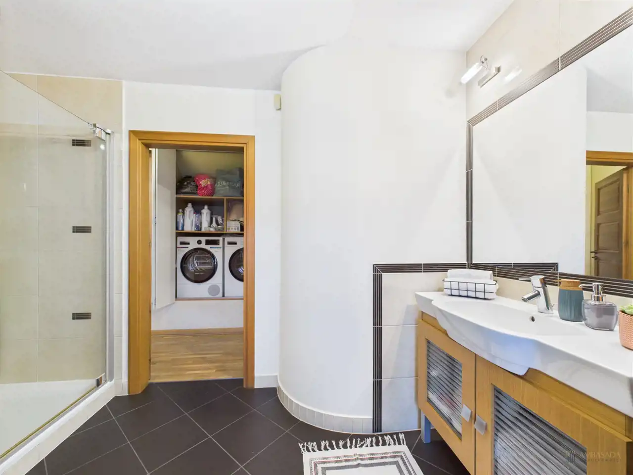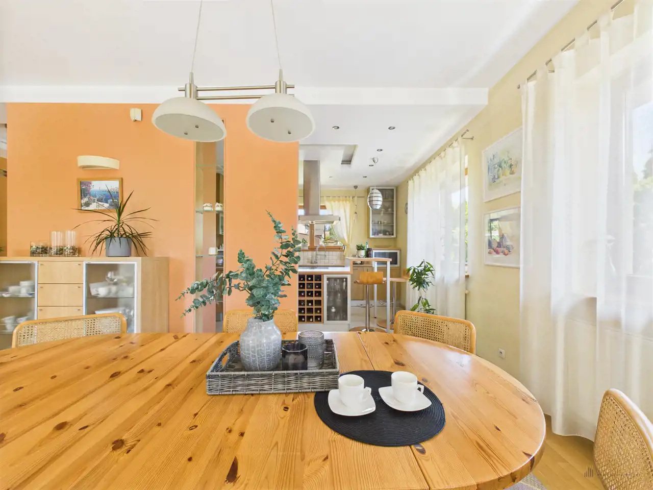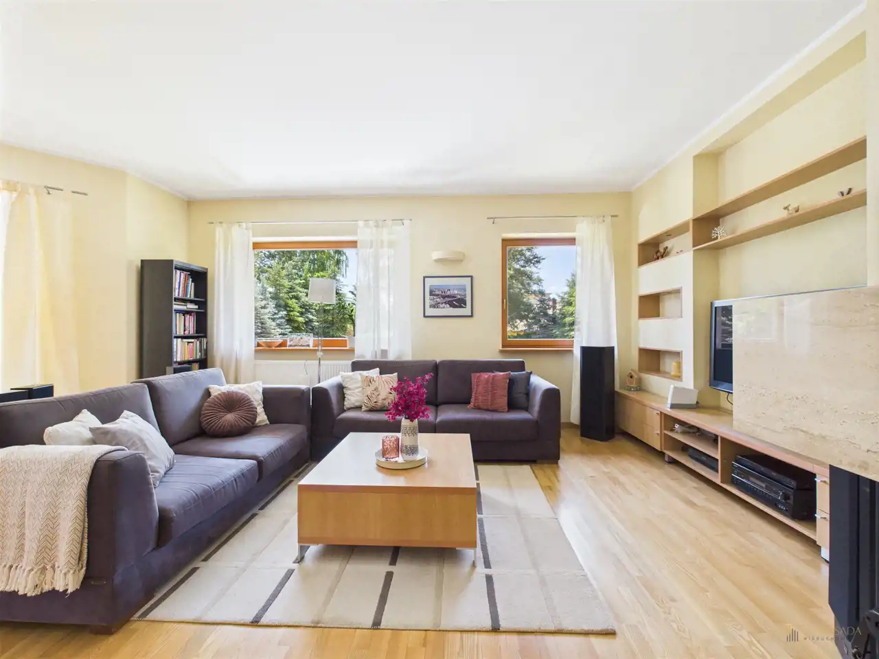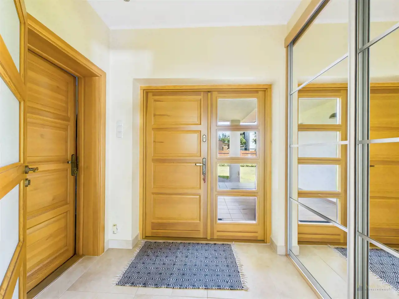 Nieruchomość bardzo zadbana i wykończona w klasycznym stylu solidnymi, naturalnymi materiałami. Na podłogach jesionowy parkiet oraz gres, schody drewniane (jesion), wszystkie zabudowy wykonane na zamówienie. Dodatkowym atutem jest kamienny kominek w salonie idealny na chłodniejsze dni oraz zadaszony taras z widokiem na ogród. Dodatkowe miejsce relaksu to wykonana z cedru sauna na 4-5 osób znajdująca się w głównej łazience na półpiętrze.