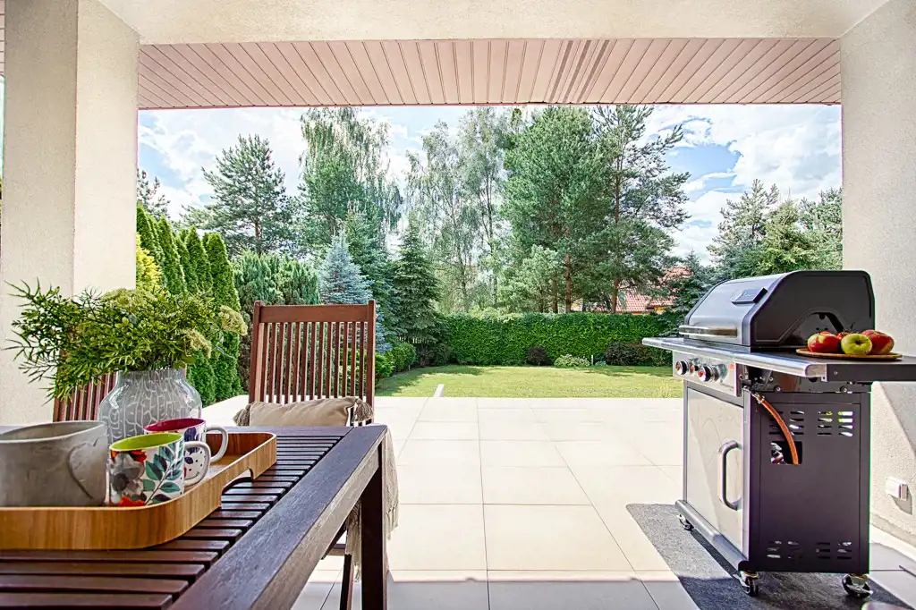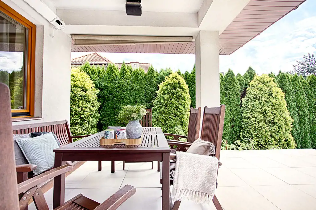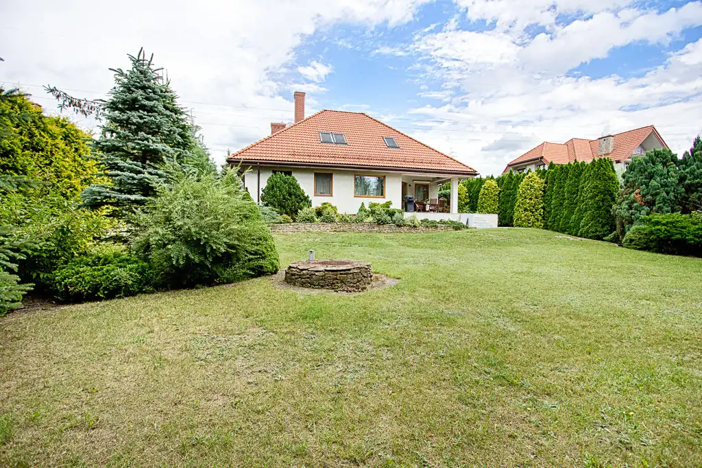 Oferta obejmuje dom wolnostojący o powierzchni całkowitej 220 m2 (użytkowej 204 m2), wybudowany w technologii murowanej (cegła Lewkowo), docieplony wełną mineralną, wykończony i oddany do użytku w 2005 r. Posadowiony na funkcjonalnie zagospodarowanej działce o powierzchni 1059 m2 z systemowym ogrodzeniem od frontu oraz bramą na pilot. Przed posesją wygodny podjazd wykończony kostką betonową z miejscem parkingowym na 2 samochody oraz wiatą na narzędzia lub rowery. Duży, dwustanowiskowy garaż w bryle budynku (33,1 m2). Elewacja zewnętrzna wykończona tynkiem, dach pokryty dachówką betonową. Otoczony zielenią, z dużym ogrodem zaopatrzonym w system nawadniania (6 stref) oraz częścią rekreacyjną w postaci wentylowanego, zadaszonego tarasu (32 m2) - wykończonym gresem i kamieniem w 2025 r. Okna drewniane, 2-szybowe firmy Domex.
