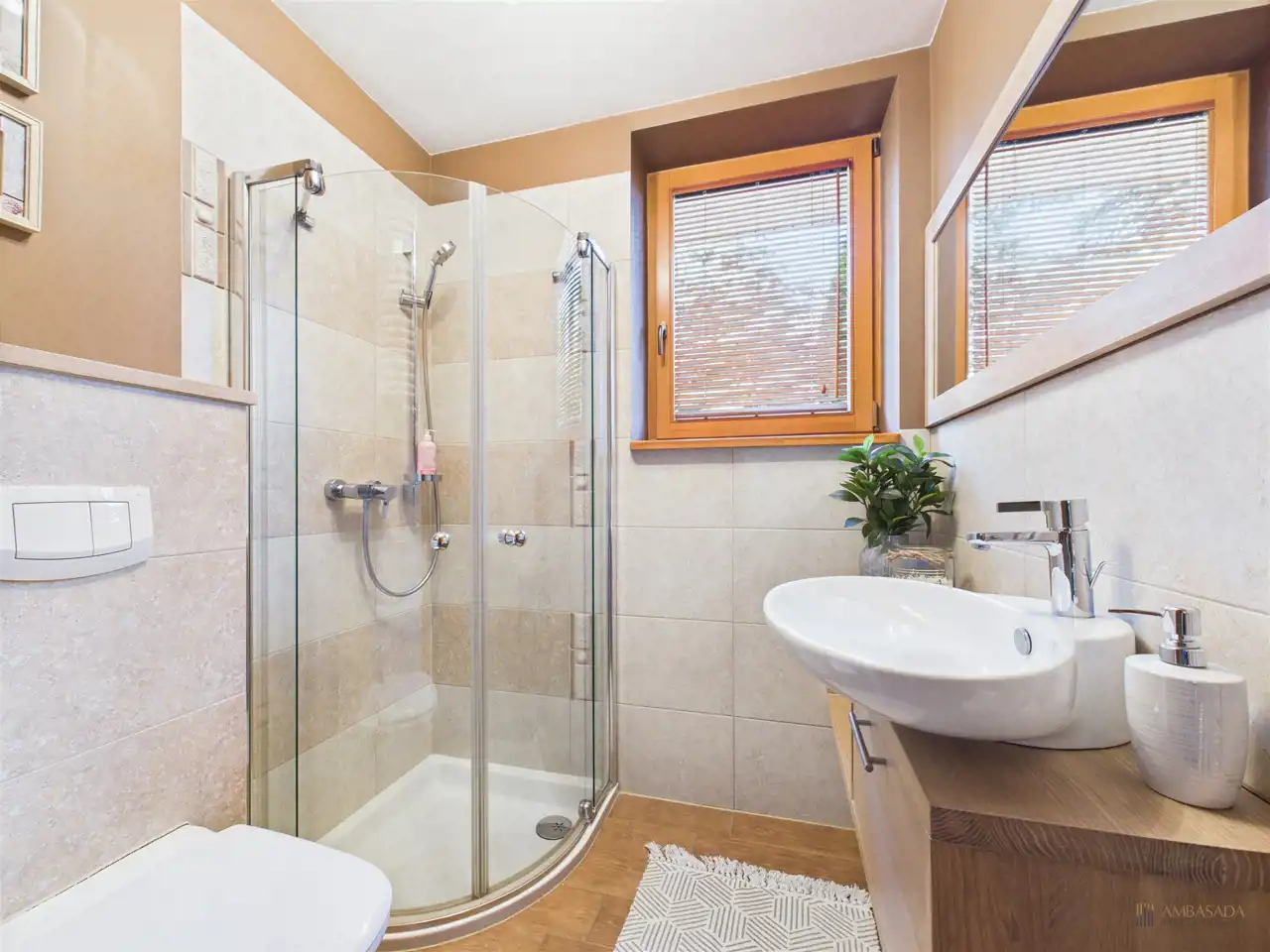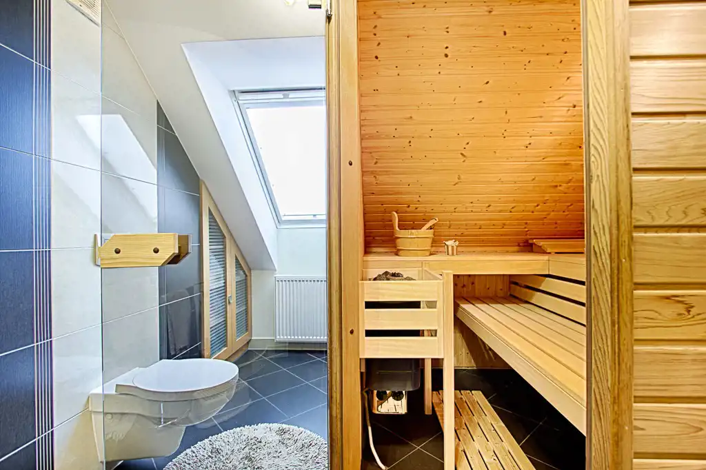 - łazienka z wc, kabiną prysznicową oraz sauną (9,3 m2)