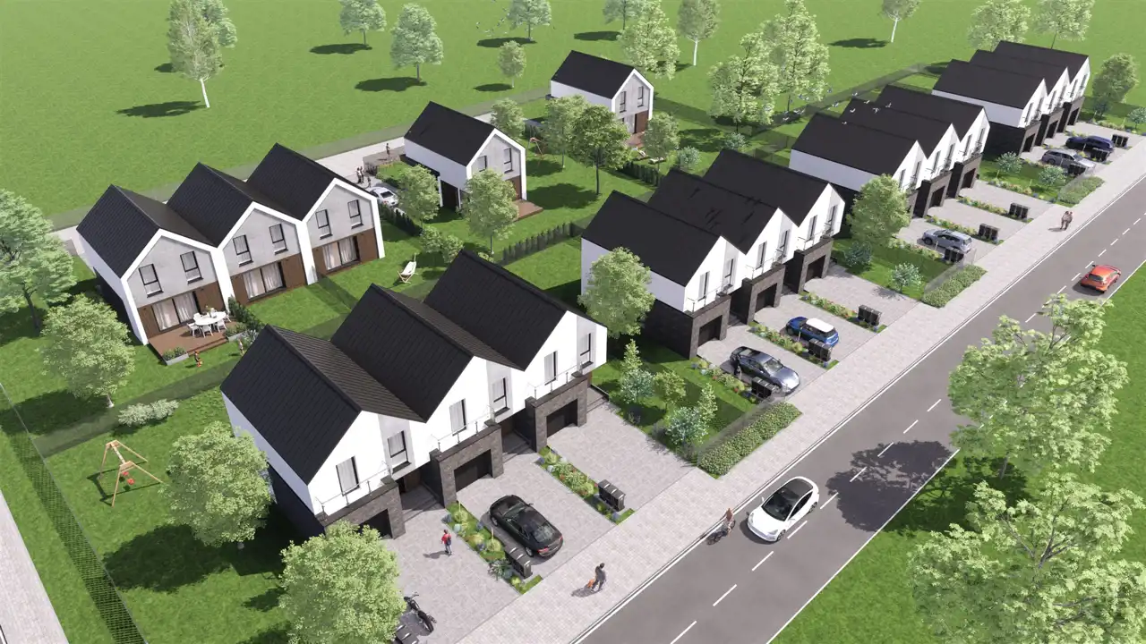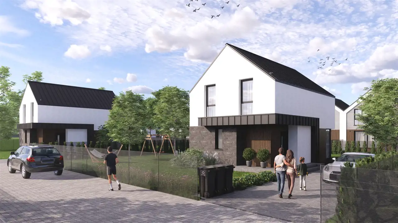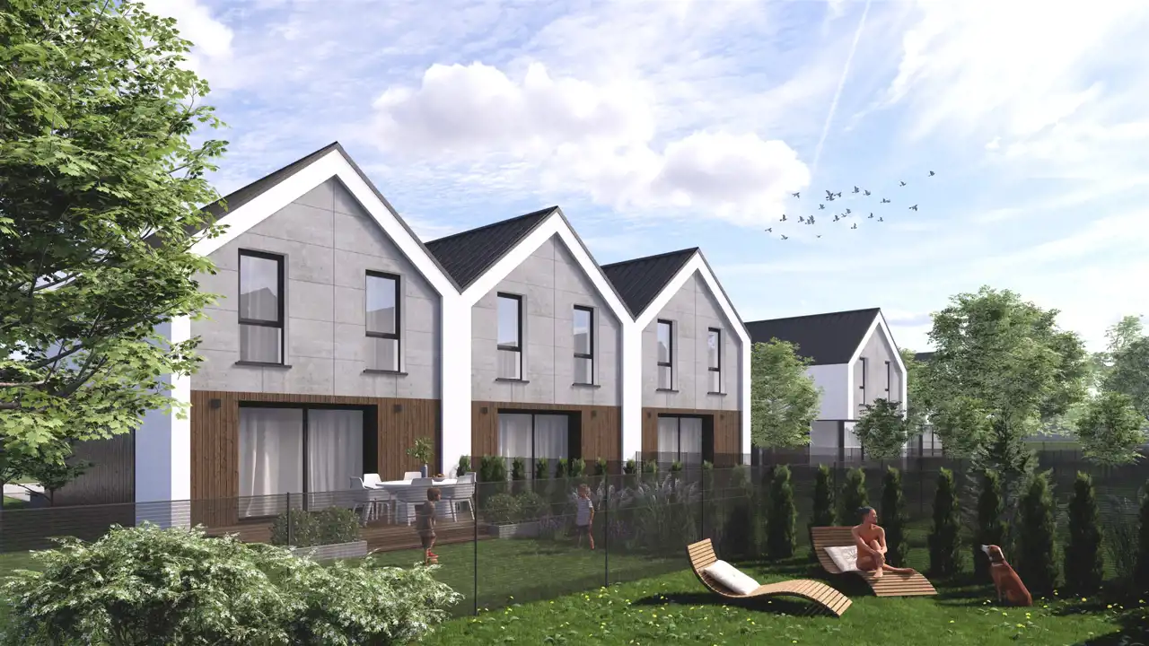 Osiedle Początek to kameralna, starannie zaprojektowana inwestycja premium, na którą składa się pięć eleganckich zespołów po trzy domy w zabudowie szeregowej. W sumie powstaje tu 15 nowoczesnych rezydencji o powierzchni użytkowej 91,20 m², stworzonych z myślą o osobach poszukujących wyjątkowego komfortu, harmonii przestrzeni i najwyższej jakości wykonania.