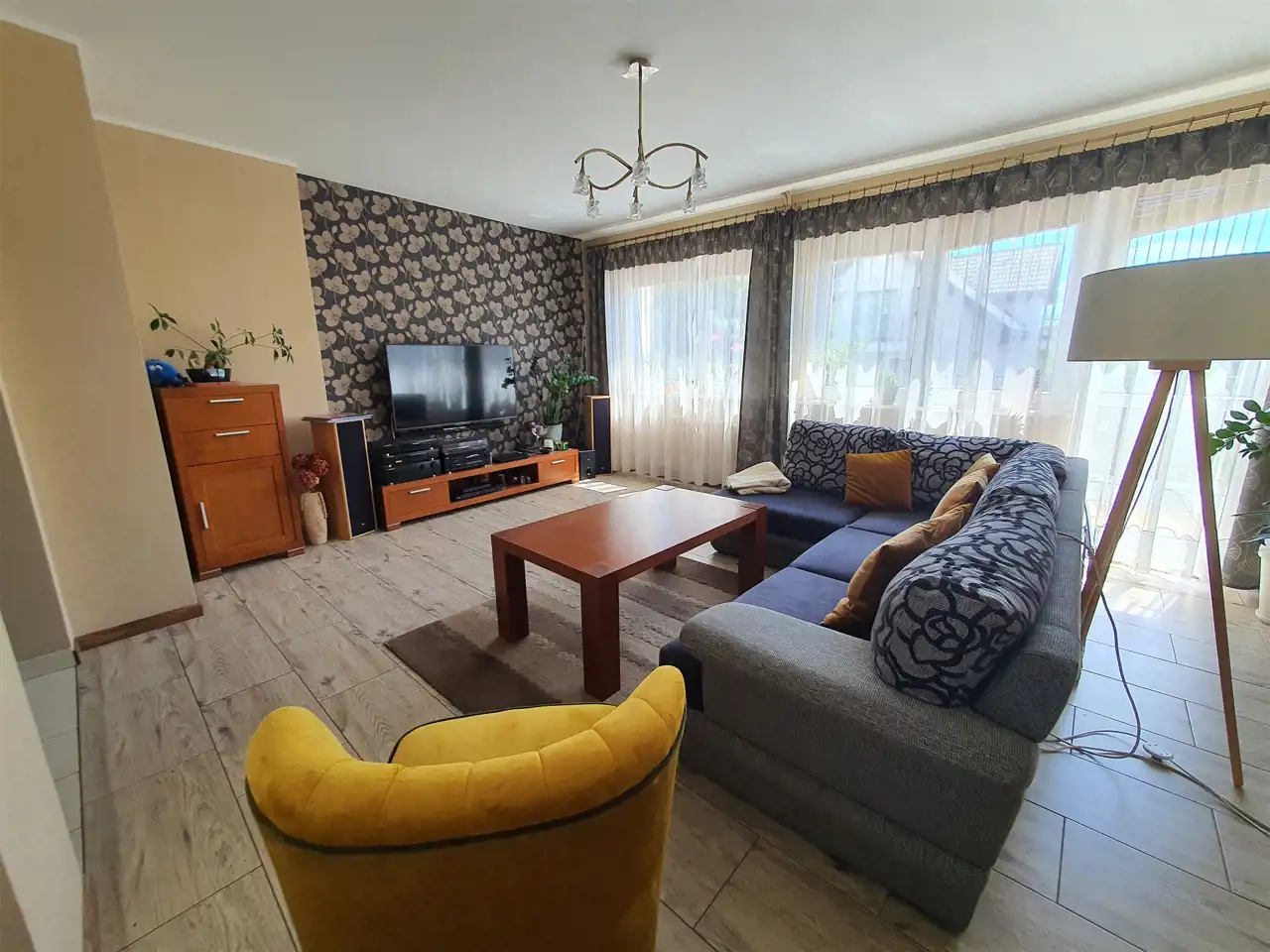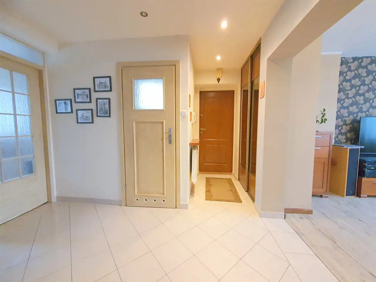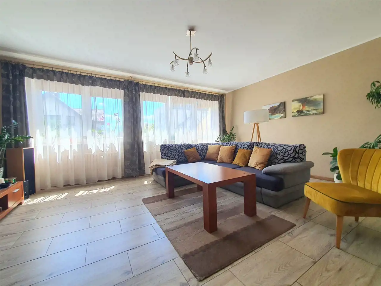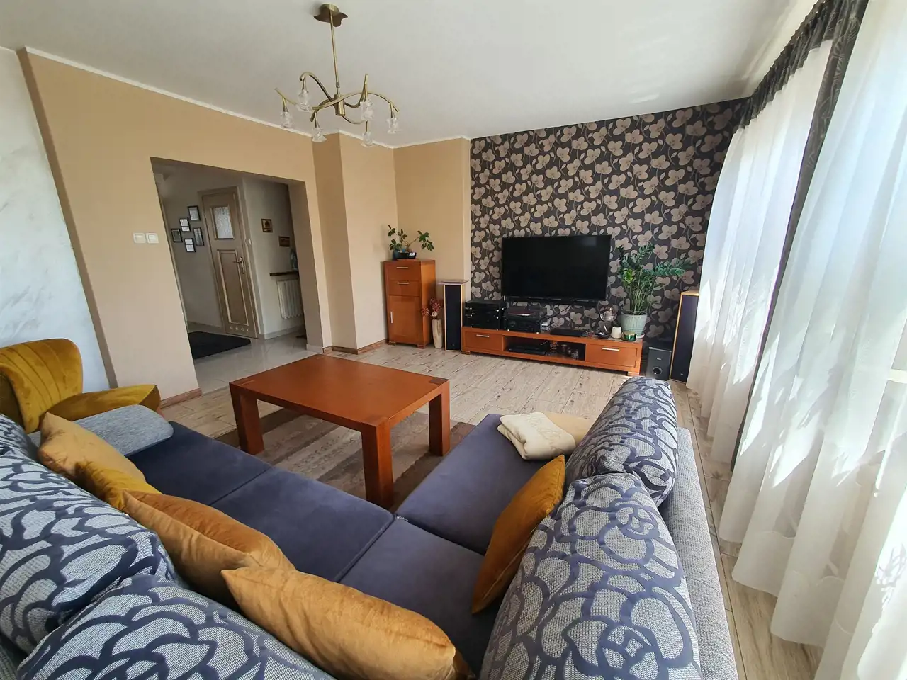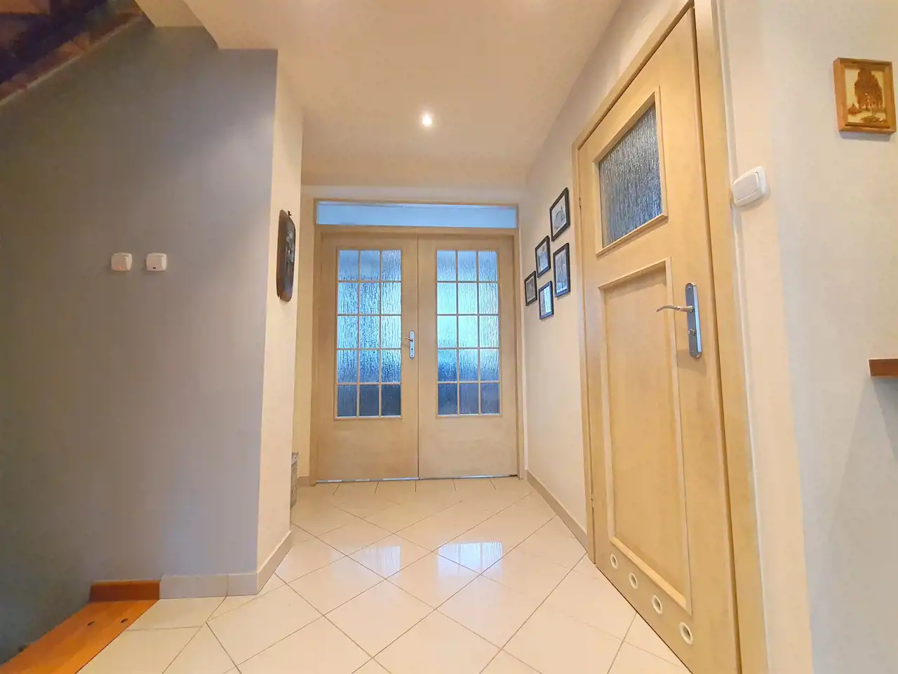 Wnętrze domu czyste i zadbane, na podłogach w sypialniach nowe panele winylowe (z 2023r.), w salonie i hallu terakota, w łazienkach glazura i terakota nowego typu. Ściany malowane z elementami tapet ozdobnych.
