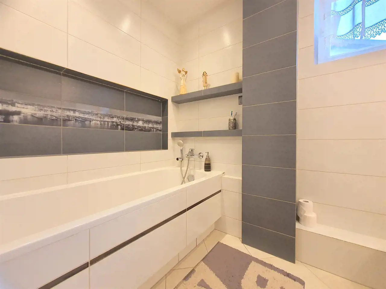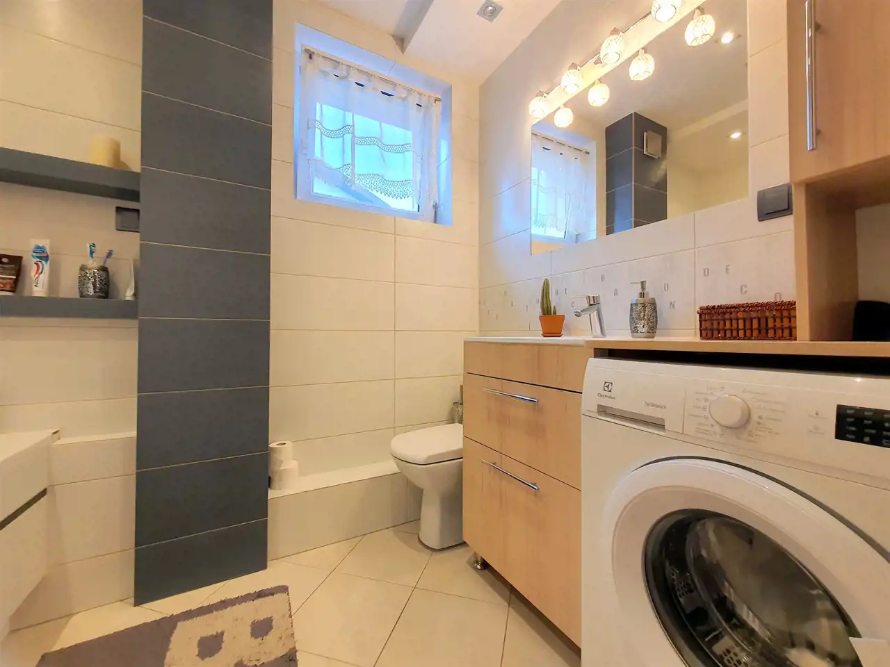 - łazienka z wanną, umywalką i WC