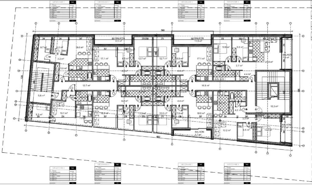 - III piętro - lokale mieszkalne (395 m) - 8 mieszkań