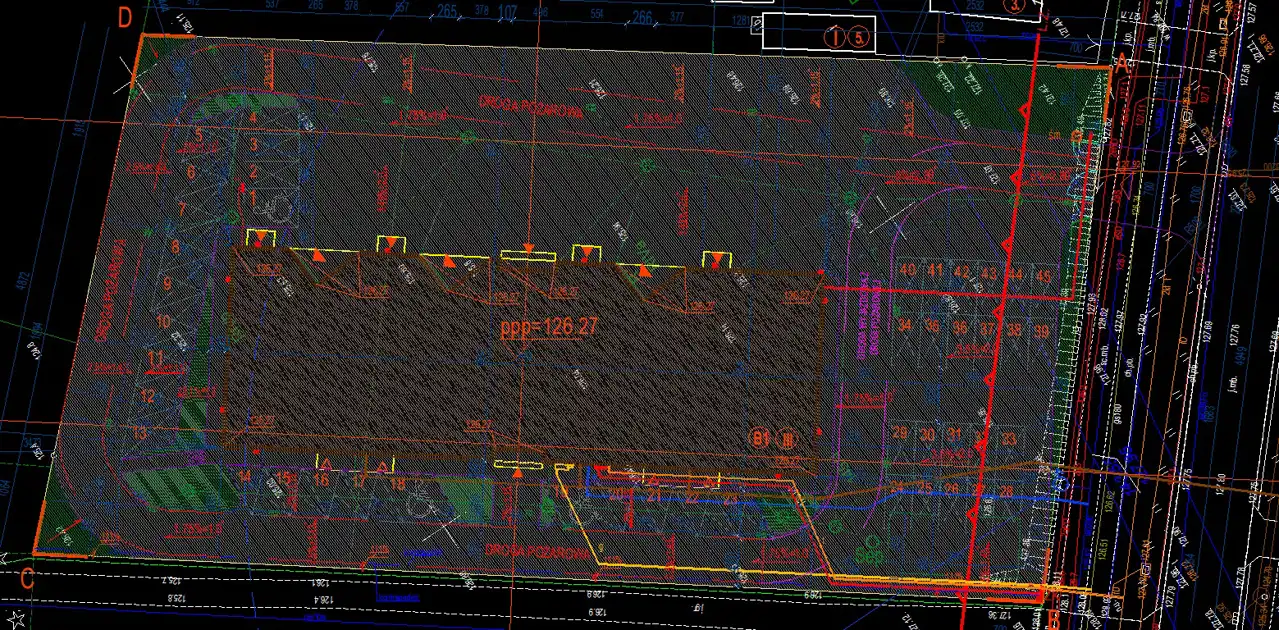 Wydane jest prawomocne pozwolenie na budowę 3-kondygnacyjnego budynku biurowo magazynowego o powierzchni zabudowy 979 m2 i powierzchni użytkowej 2.805 m2.