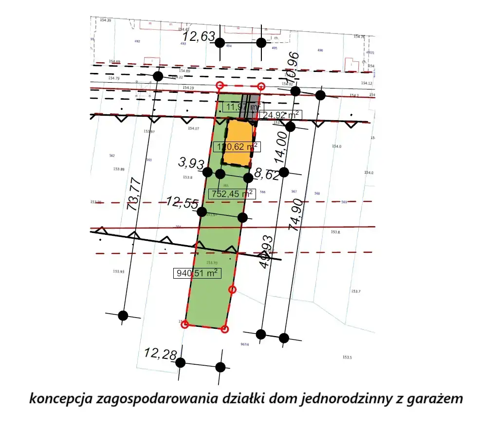 • Maksymalna powierzchnia zabudowy: 30% działki (ok. 282 m²)