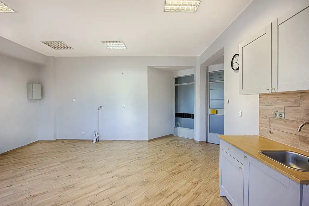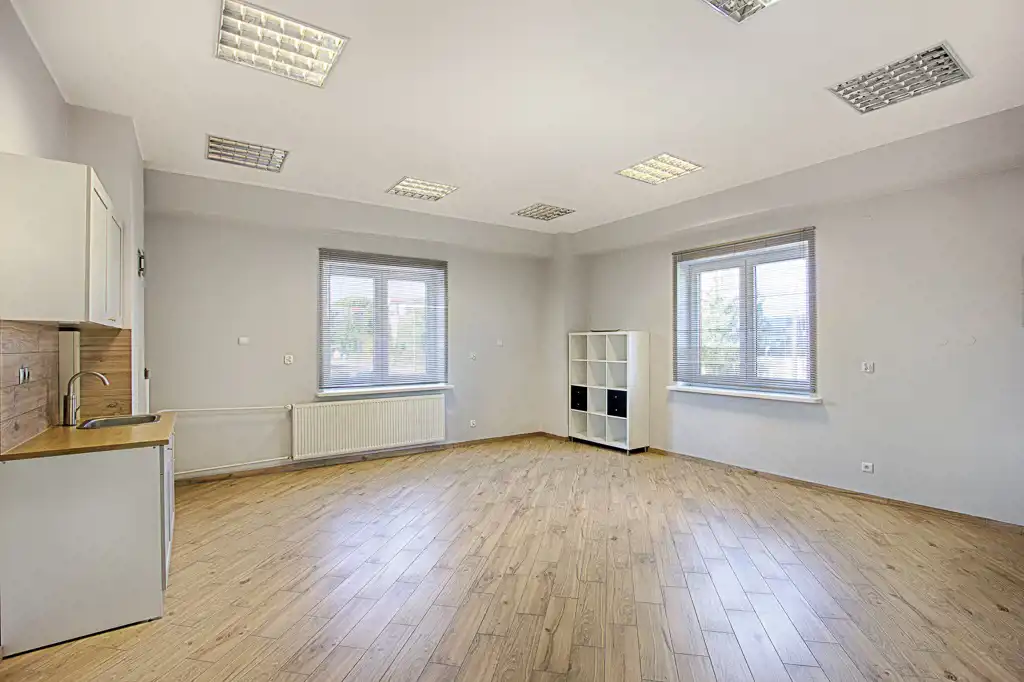 Nieruchomość z korzystną ekspozycją i miejscem na reklamę od strony Upalnej. Lokal wyposażony jest w aneks kuchenny z doprowadzoną wodą. Toaleta znajduje się na tym samym piętrze kilka lokali obok. Lokal jest wyremontowany i gotowy do wydania od zaraz. Bezpieczeństwo zapewnia wyposażenie budynku w monitoring.