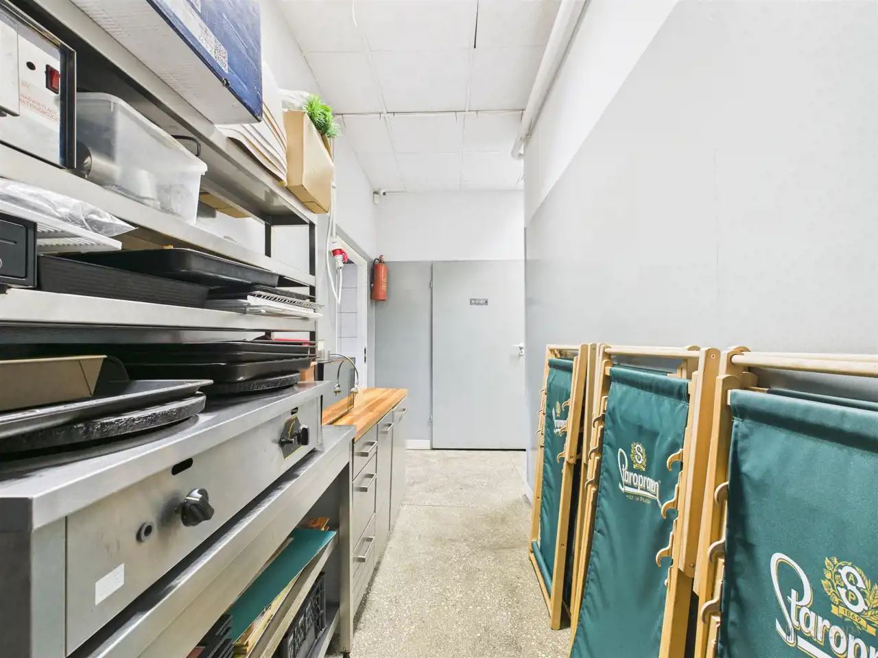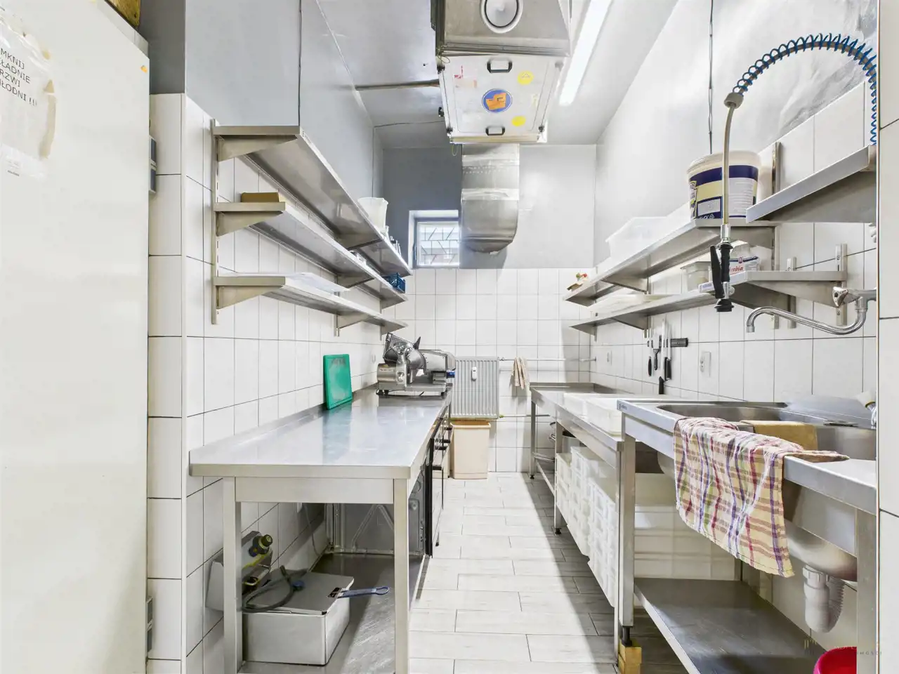 - profesjonalne wyposażenie gastronomiczne tj. szafki oraz blaty kuchenne z kwasoodopornej stali nierdzewnej, wyspa kuchenna, zlewozmywaki, zamrażarki skrzyniowe, zmywarka kapturowa, płyta gazowa Asber, okap, naleśnikarki, grill, frytownica, prasa do burgerów, piekarniki, krajalnica Hendi, mieszalnik spiralny-mikser, ekpres do kawy, uzdatniacz wody)