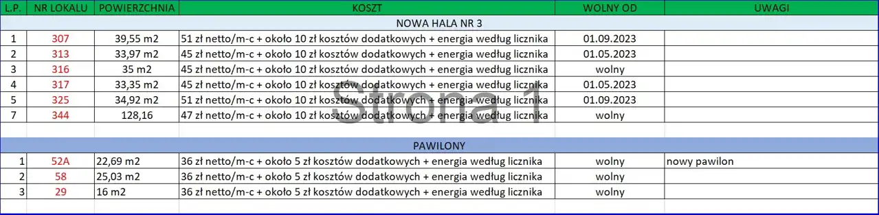 Lokale o powierzchni od 16m2 do 128,16m2 w cenie od 36zł netto/m-c.