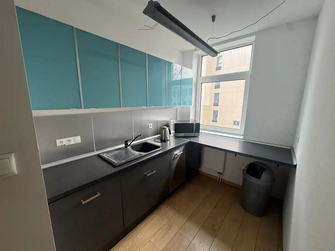 Lokal składa się z 2 pomieszczeń, kuchni i łazienki. W budynku znajduje się winda. Przed budynkiem parking dla klientów.