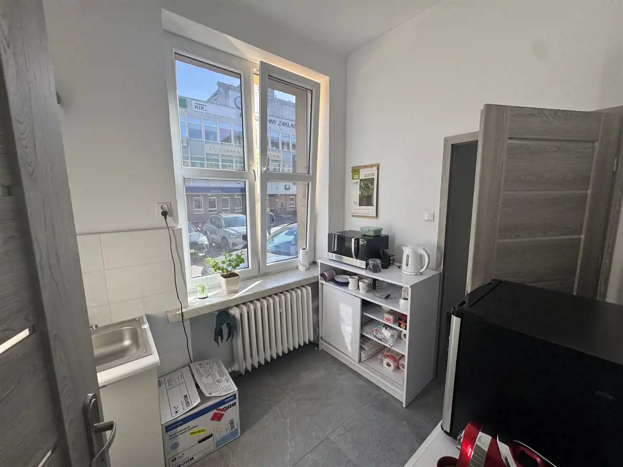 Usytuowany jest na parterze w budynku biurowym. Składa się z trzech pomieszczeń. Istnieje możliwość podziału na mniejsze pokoje lub przerobienia na dwa duże.