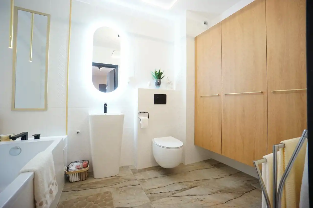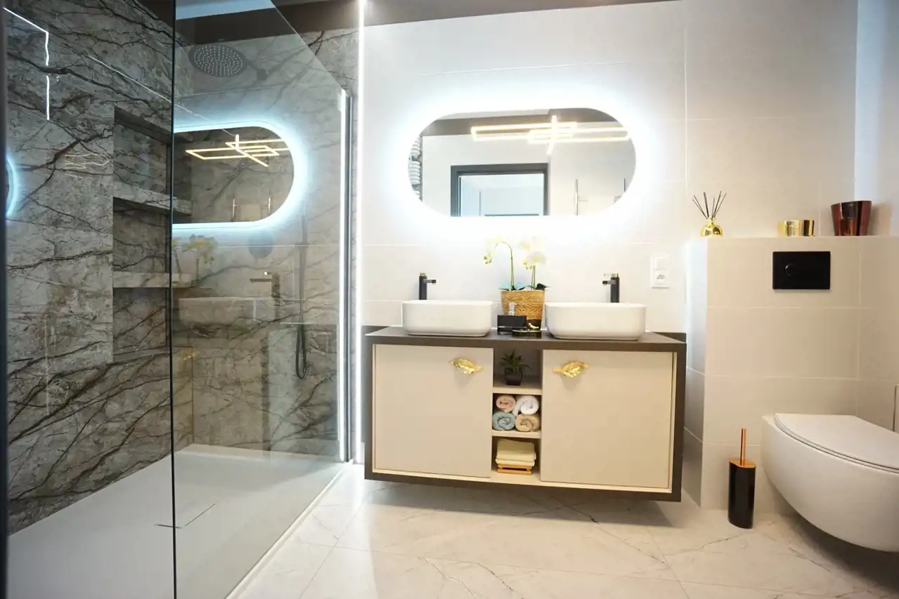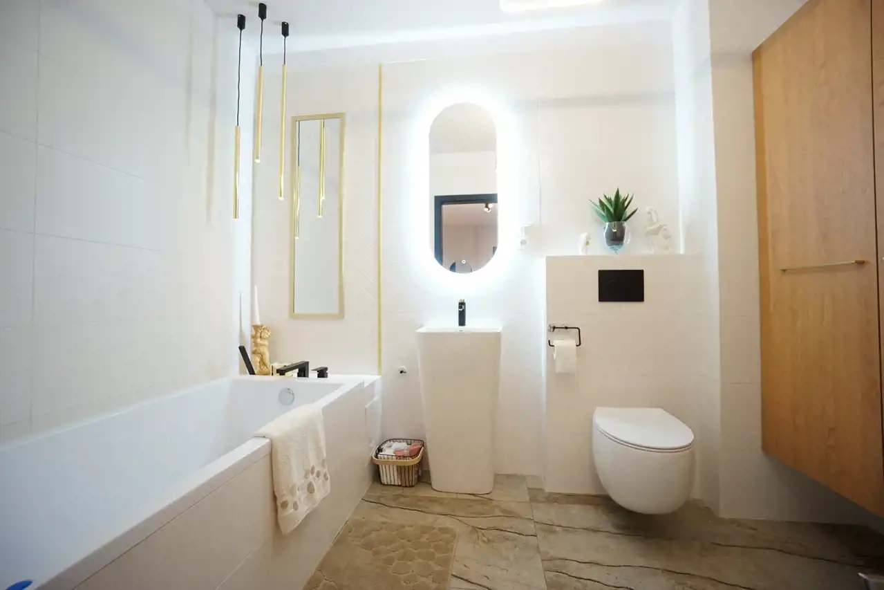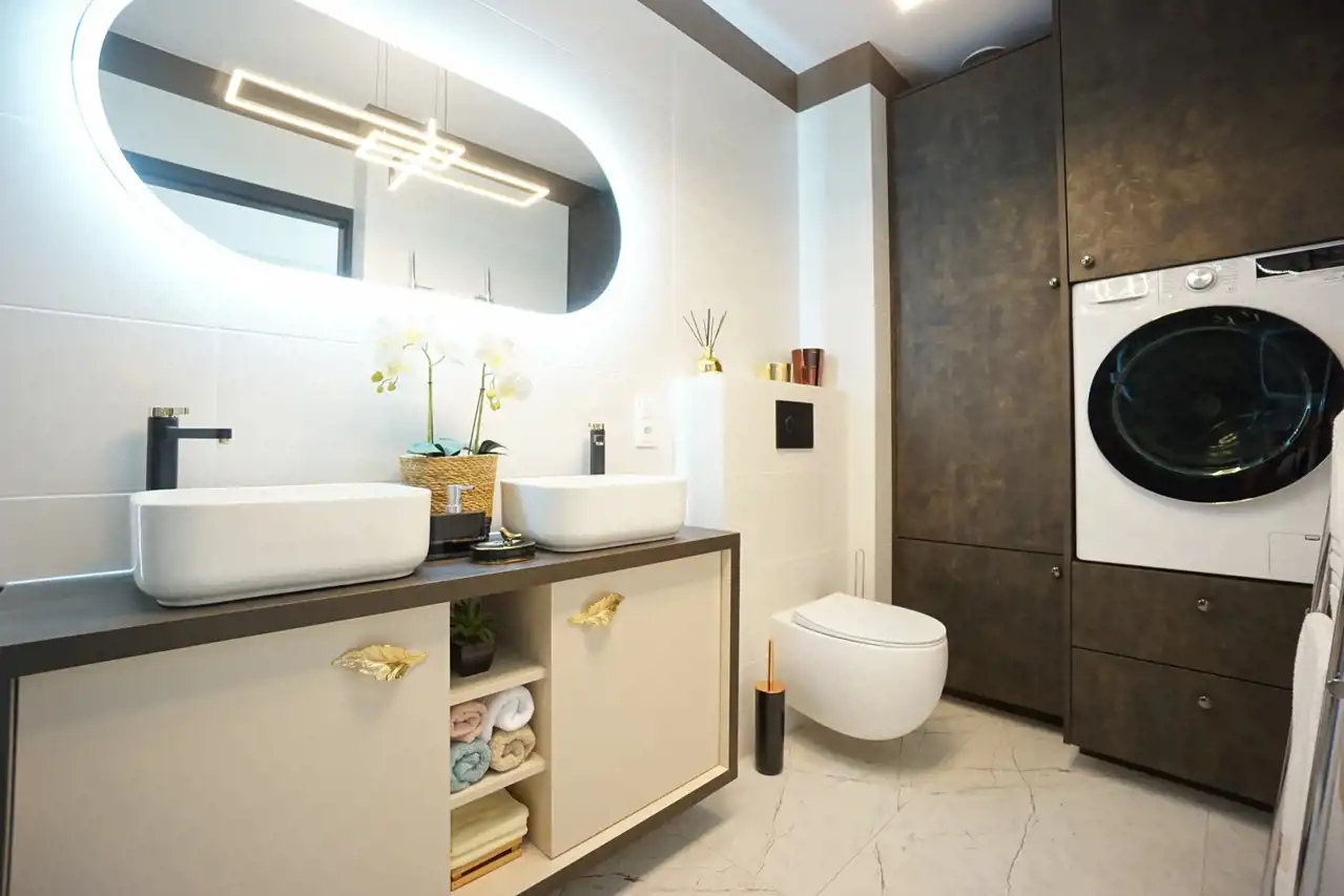 -2 eleganckie łazienki zapewniają wygodę oraz intymność, w łazience pralko/suszarka