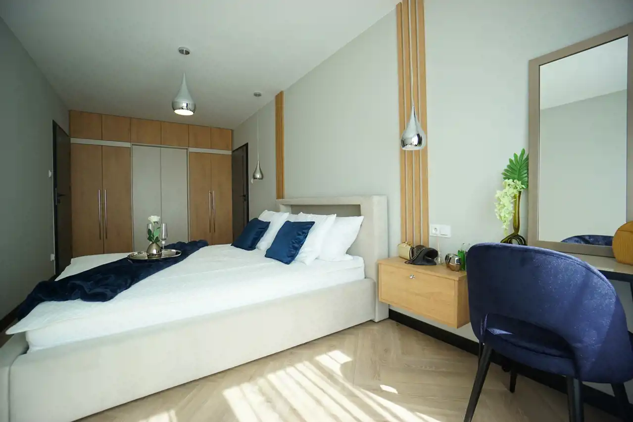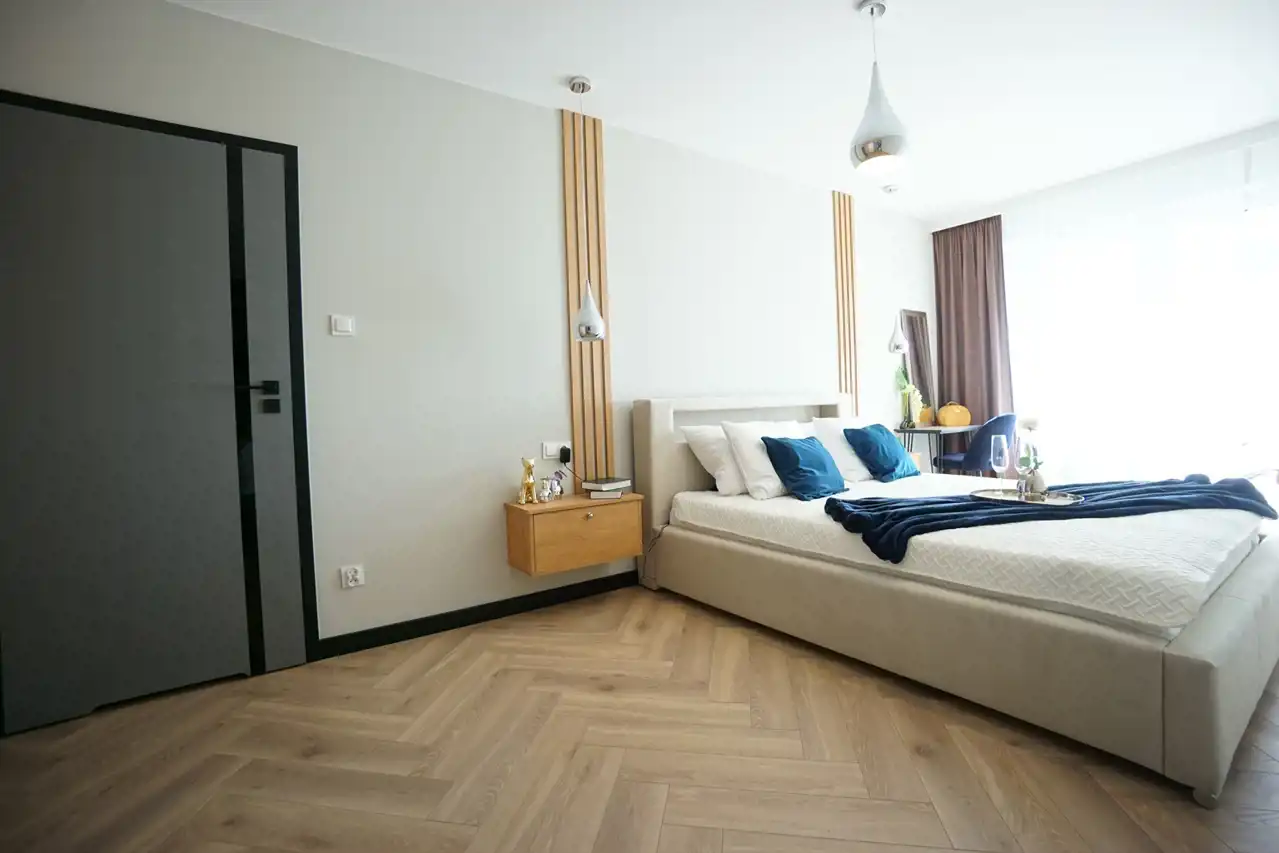 -3 ustawne sypialnie, każda wyposażona w liczne zabudowy co daje możliwość stworzenia osobistych przestrzeni dla każdego mieszkańca. Główna sypialnia wyposażona w łóżko i toaletkę.