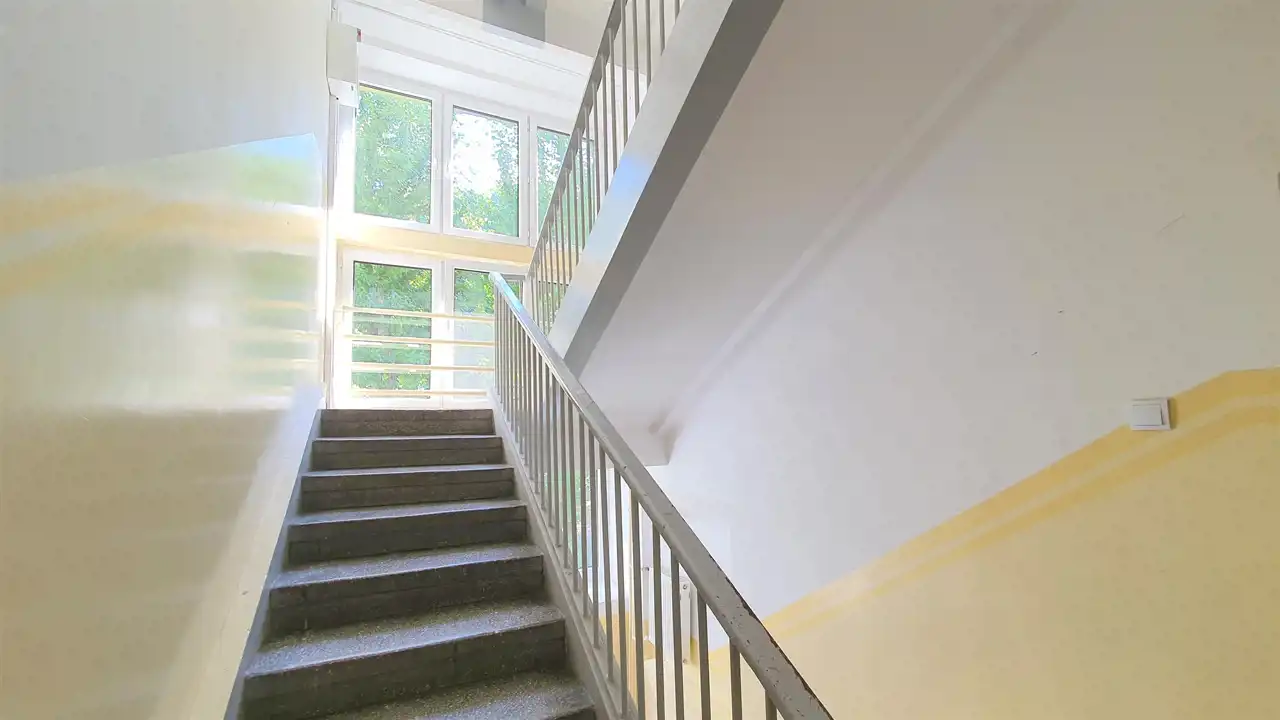 Mieszkanie usytuowane na I piętrze 4-piętrowego bloku z docieplonej cegły.