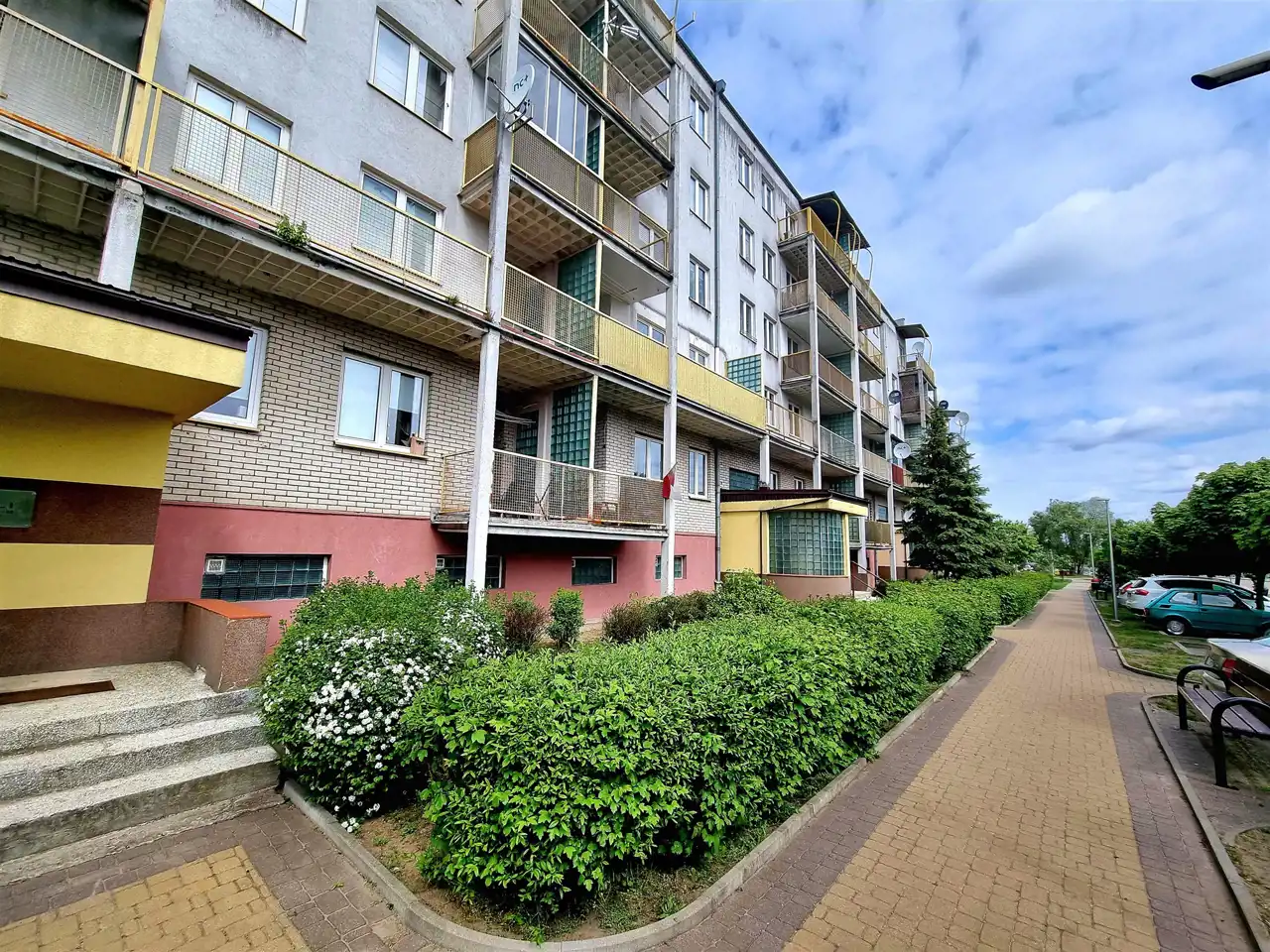 Nieruchomość mieści się na IV piętrze w czteropiętrowym bloku z cegły, z drugiej połowy lat 90-tych, przy ulicy Szarych Szeregów.