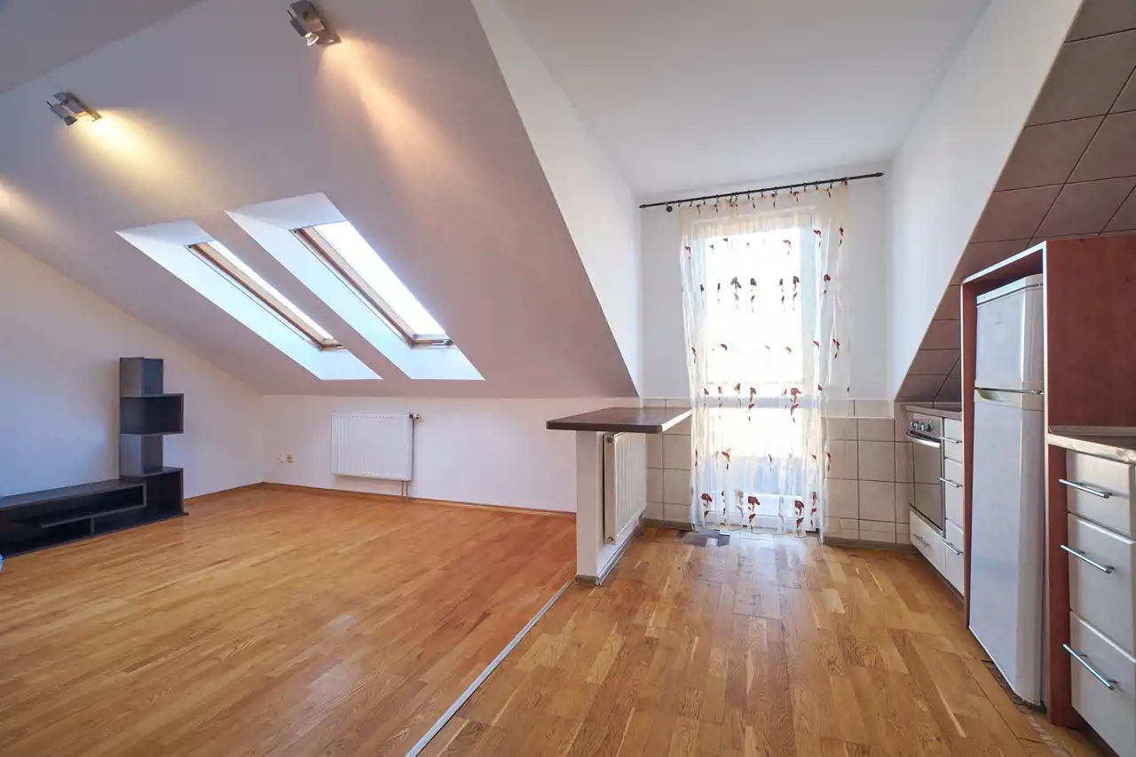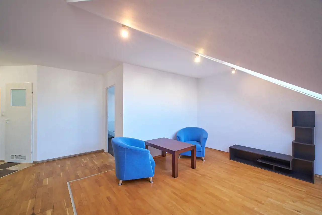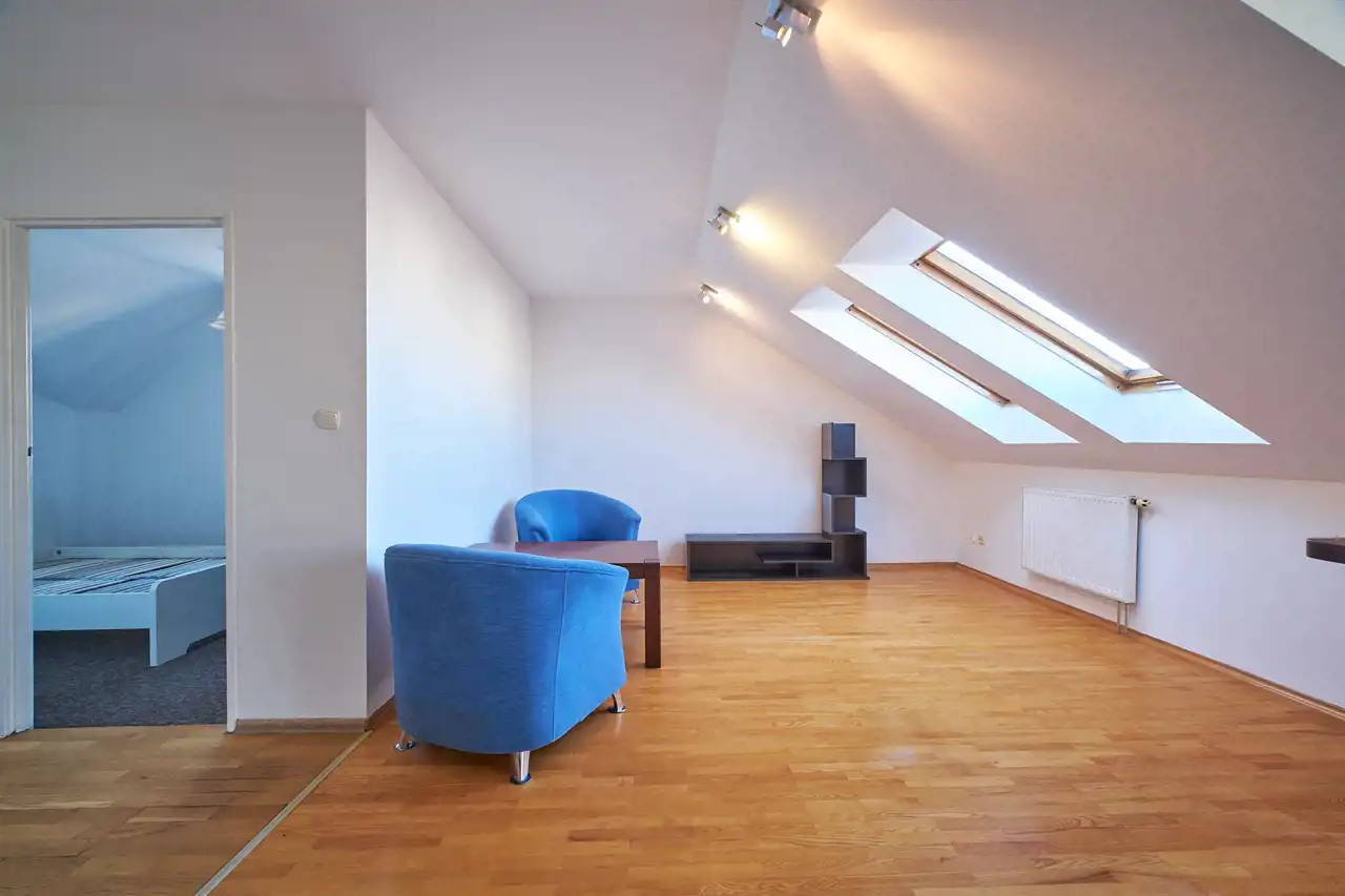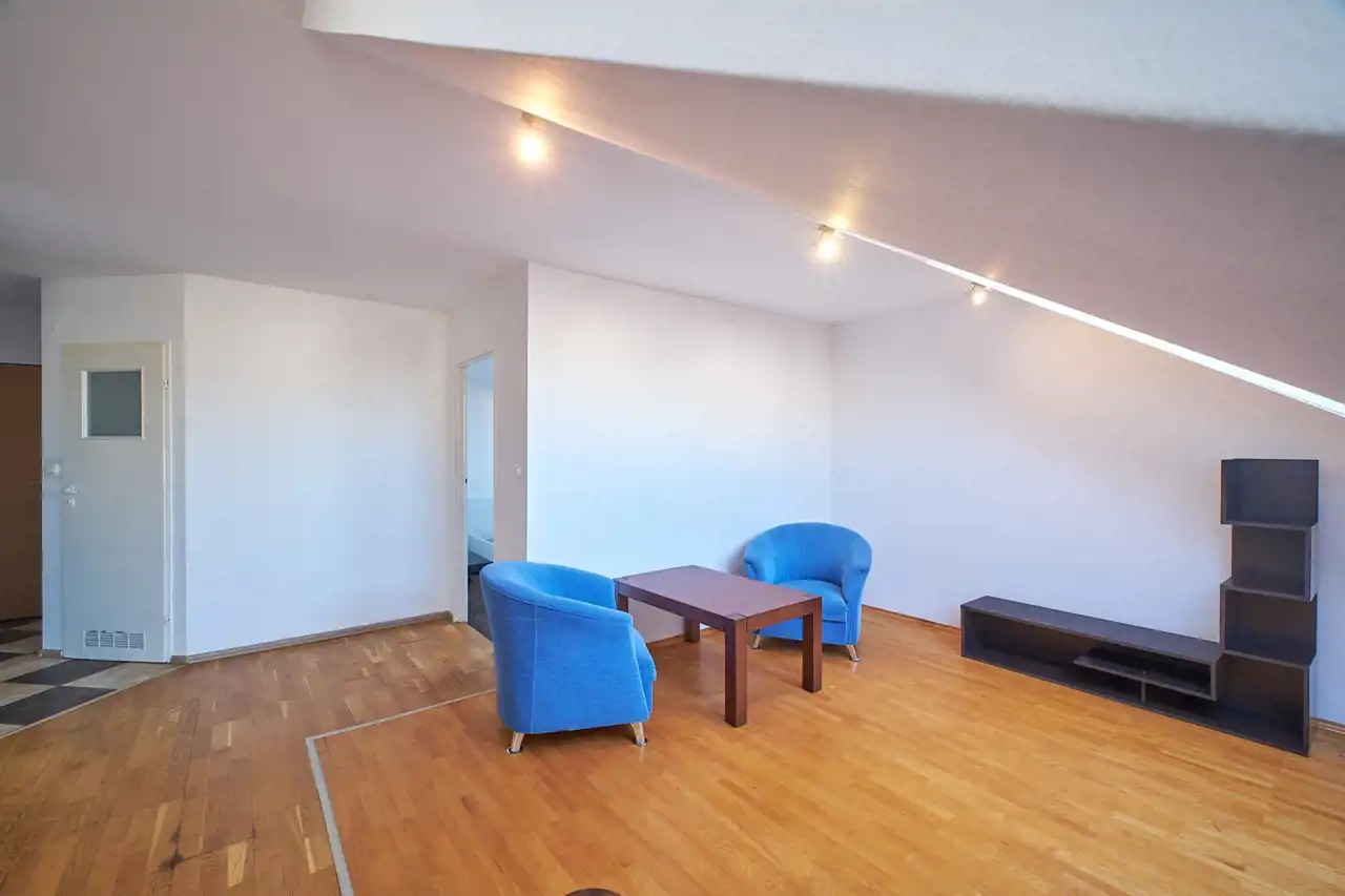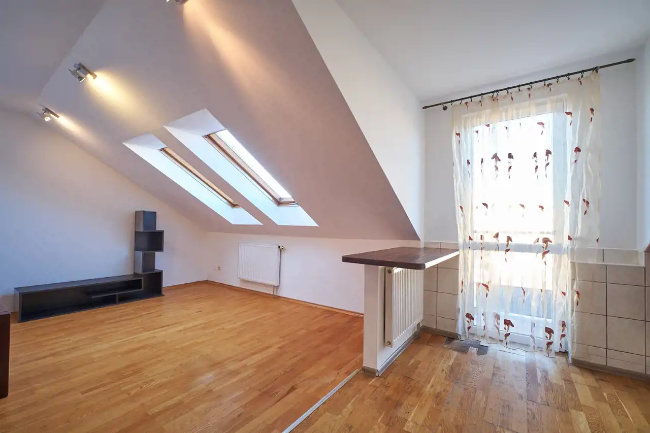 Wnętrze ze skosami, które dają możliwość klimatycznej i romantycznej aranżacji.
