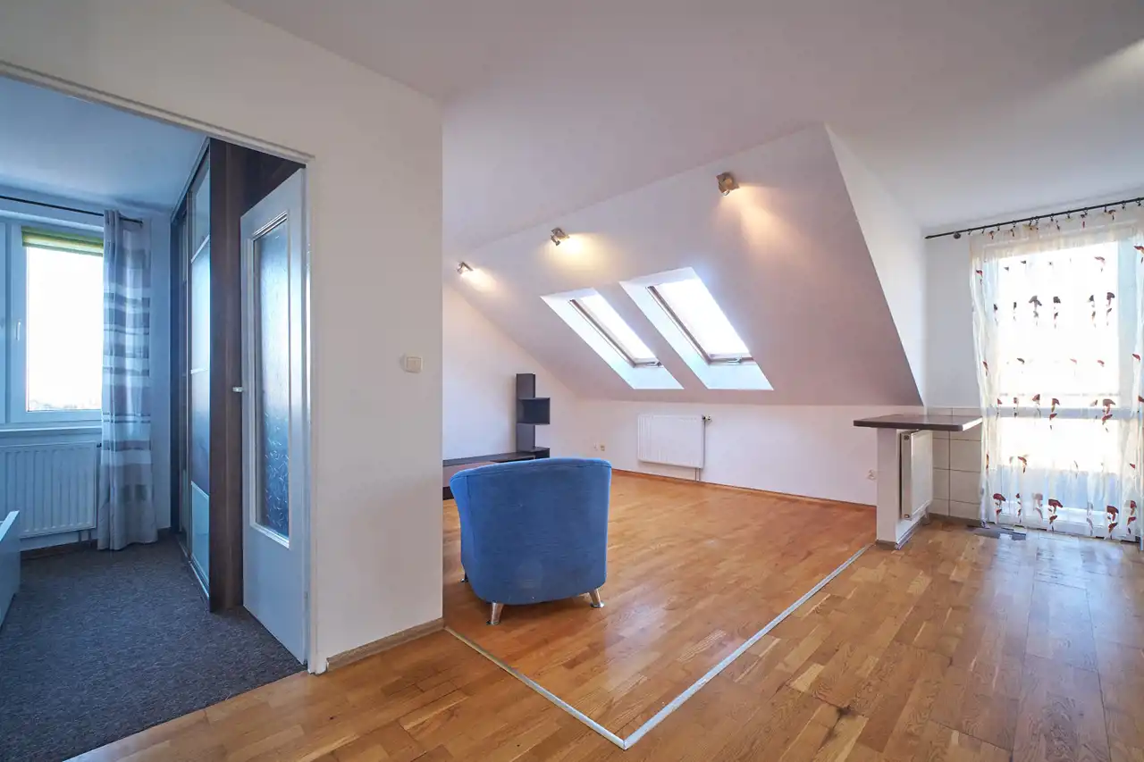 Ostatnia kondygnacja i brak sąsiadów nad głową zapewnia wyjątkowe poczucie prywatności.
