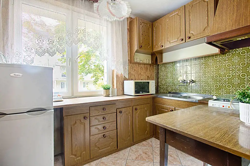 Nieruchomość wymagająca remontu z możliwością aranżacji wnętrz od podstaw według indywidualnych potrzeb i oczekiwań. Na podłogach w pokojach dębowy parkiet w klasyczną jodełkę, w kuchni i łazience terakota. Na ścianach tapety w pokojach, w łazience i kuchni glazura. Okna PCV. Do mieszkania przynależy piwnica. Pod blokiem miejsca parkingowe dostępne wyłącznie dla mieszkańców bloku - za szlabanem na pilot. Klatki schodowe po remoncie, blok po termomodernizacji.