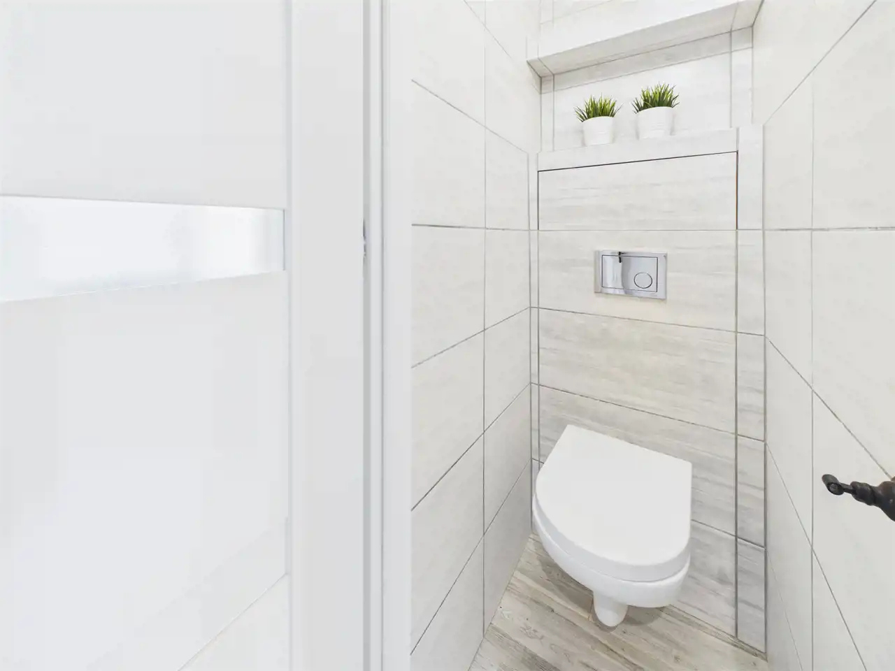 Łazienka utrzymana w jasnej kolorystyce została zaprojektowana z myślą o wygodzie, a oddzielne WC zwiększa komfort codziennego użytkowania.