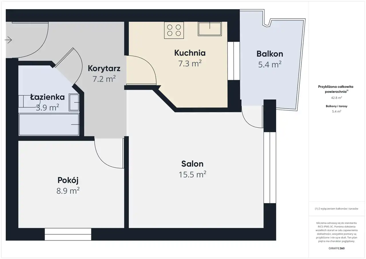 - Charakterystyka mieszkania 42.8 m2, 2 pokoje