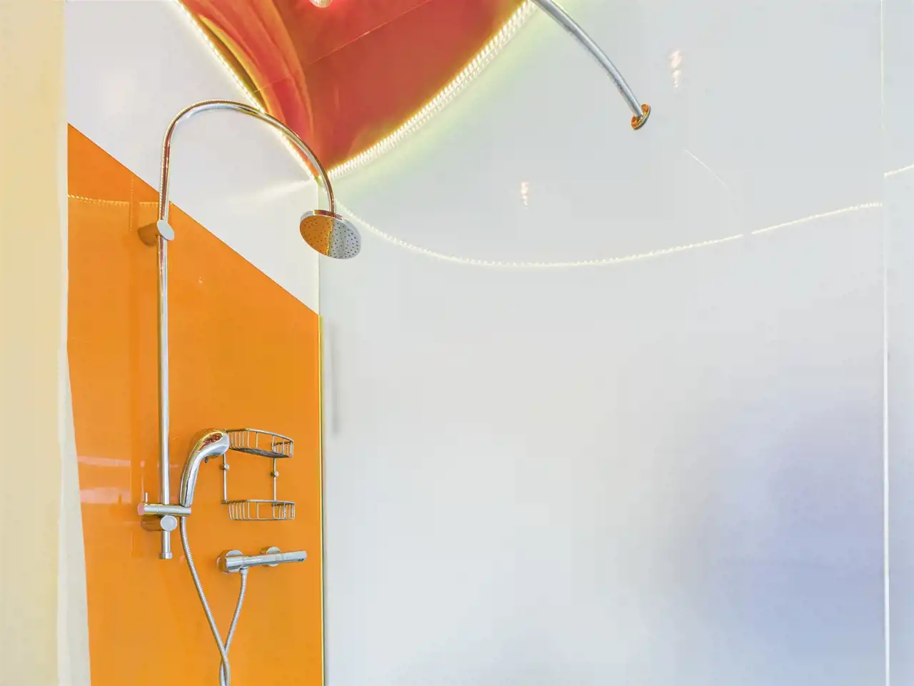 Łazienka – wykończona z dużą dbałością o detale. Oświetlenie LED, niebanalne płytki i unikatowy charakter przestrzeni.