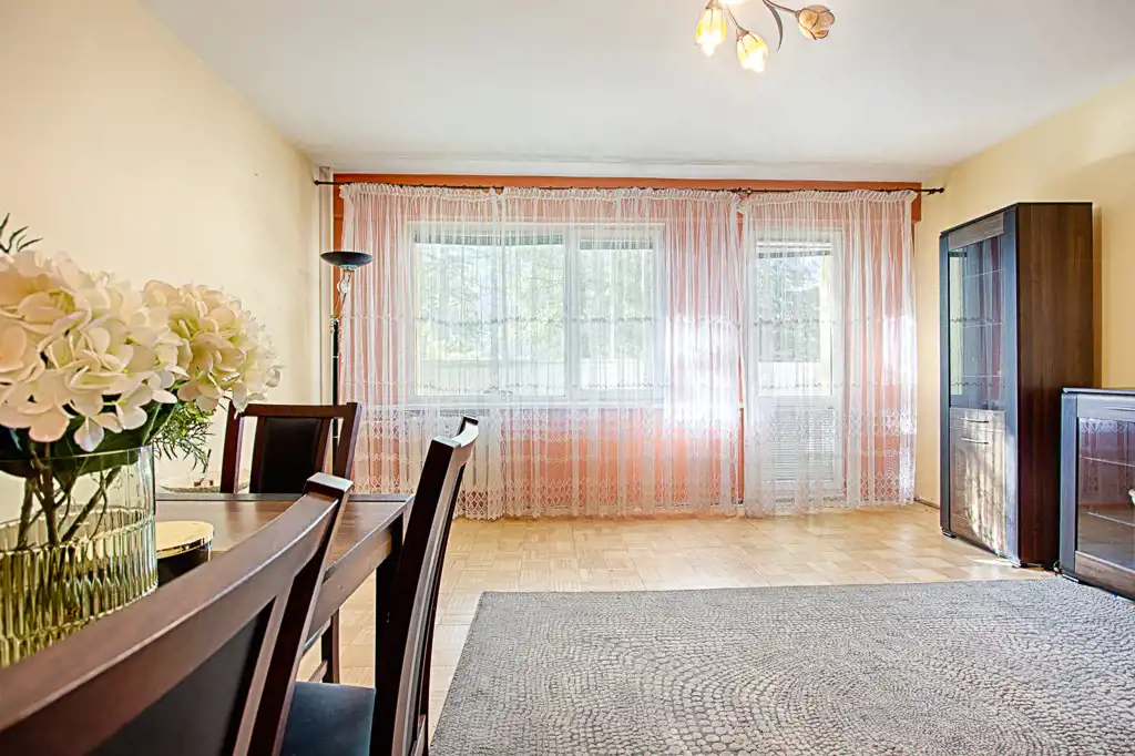 Przestronne mieszkanie o powierzchni 61,3 m² położone na pierwszym piętrze w czteropiętrowym bloku z wielkiej płyty na popularnym i lubianym osiedlu Zielone Wzgórza. Budynek zarządzany przez spółdzielnię mieszkaniową, klatki schodowe po remoncie, czyste i zadbane. Do mieszkania przynależy piwnica.