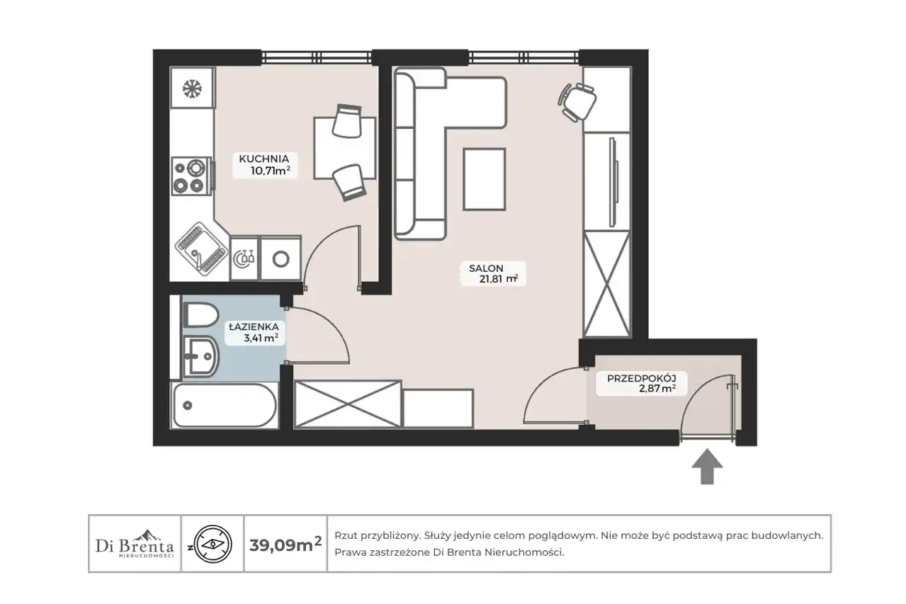 - Charakterystyka mieszkania 39.09 m2, 1 pokój