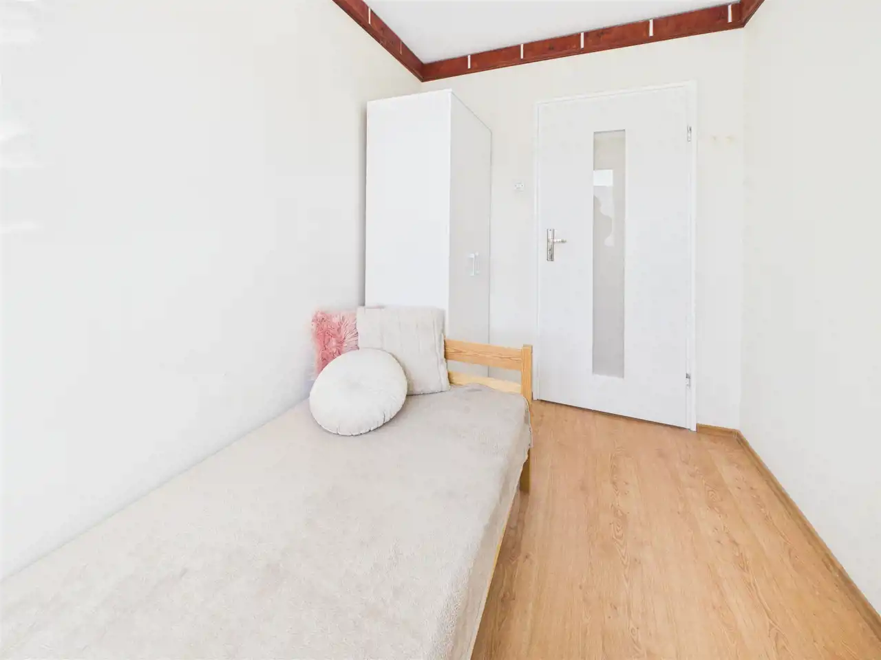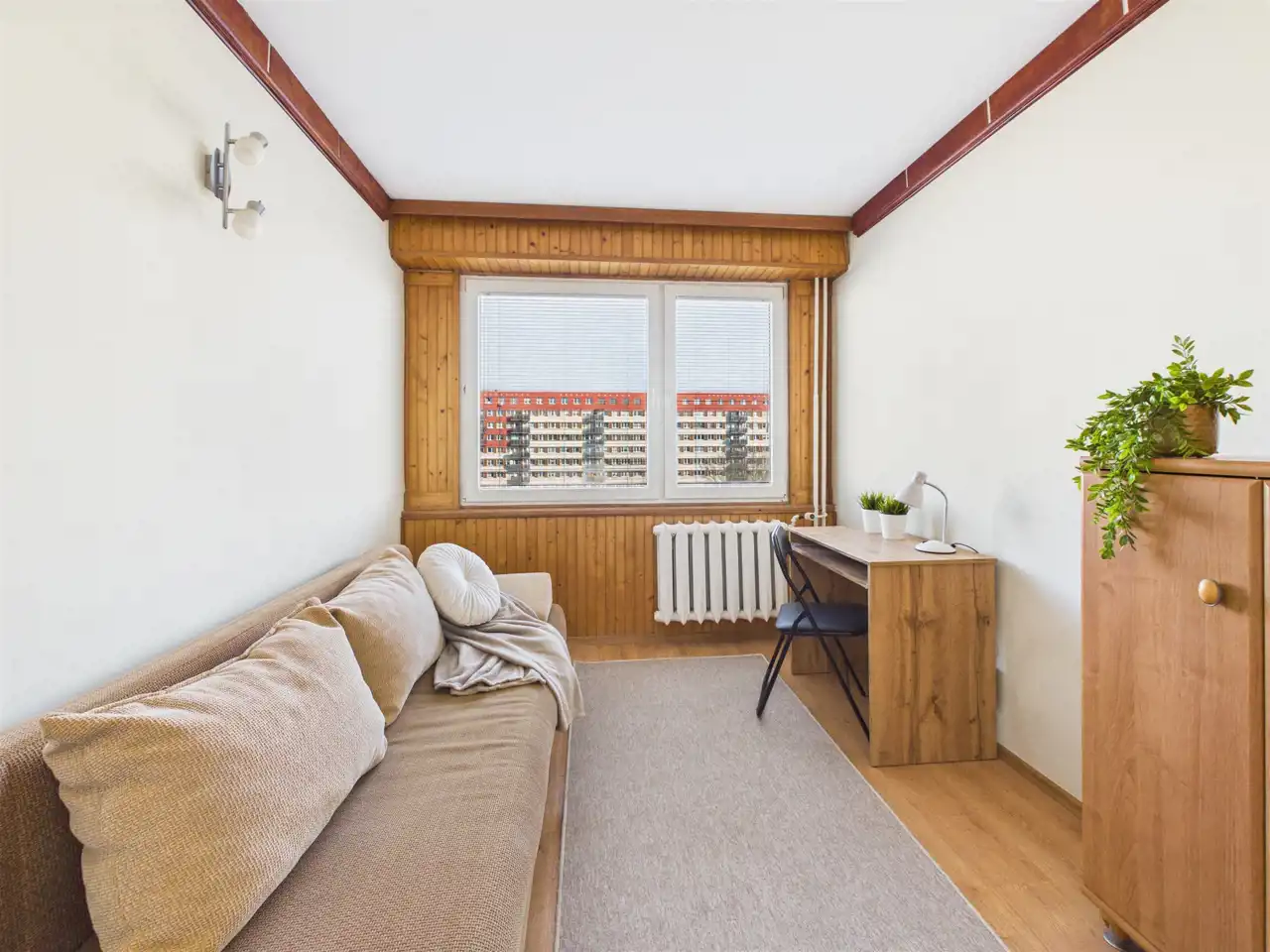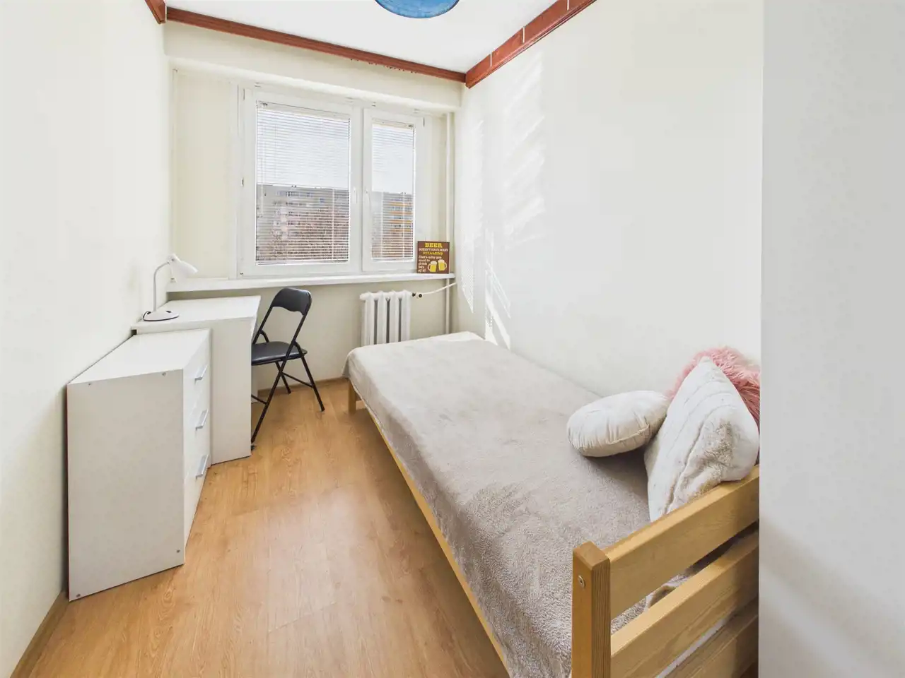 Układ uzupełnia oddzielna, urządzona kuchnia z zabudową, łazienka w ponadczasowej bieli oraz osobne WC – rozwiązanie szczególnie wygodne przy większej liczbie mieszkańców. W mieszkaniu wymieniono okna oraz położono panele podłogowe. Ściany wymagają odświeżenia, co daje możliwość nadania wnętrzu własnego stylu bez konieczności przeprowadzania kosztownego remontu generalnego.