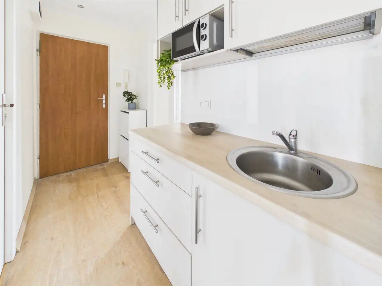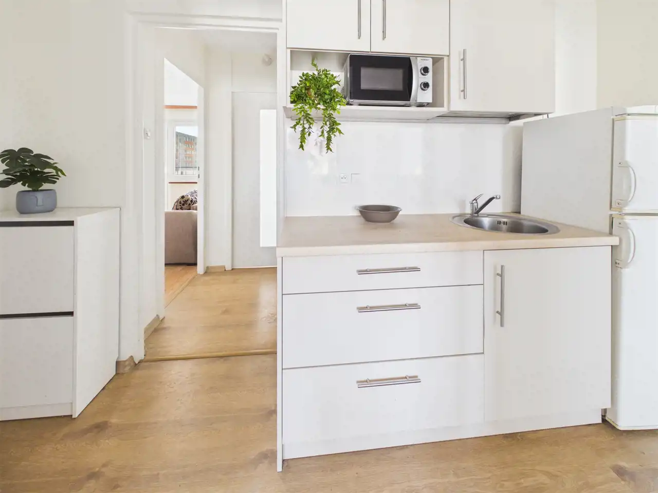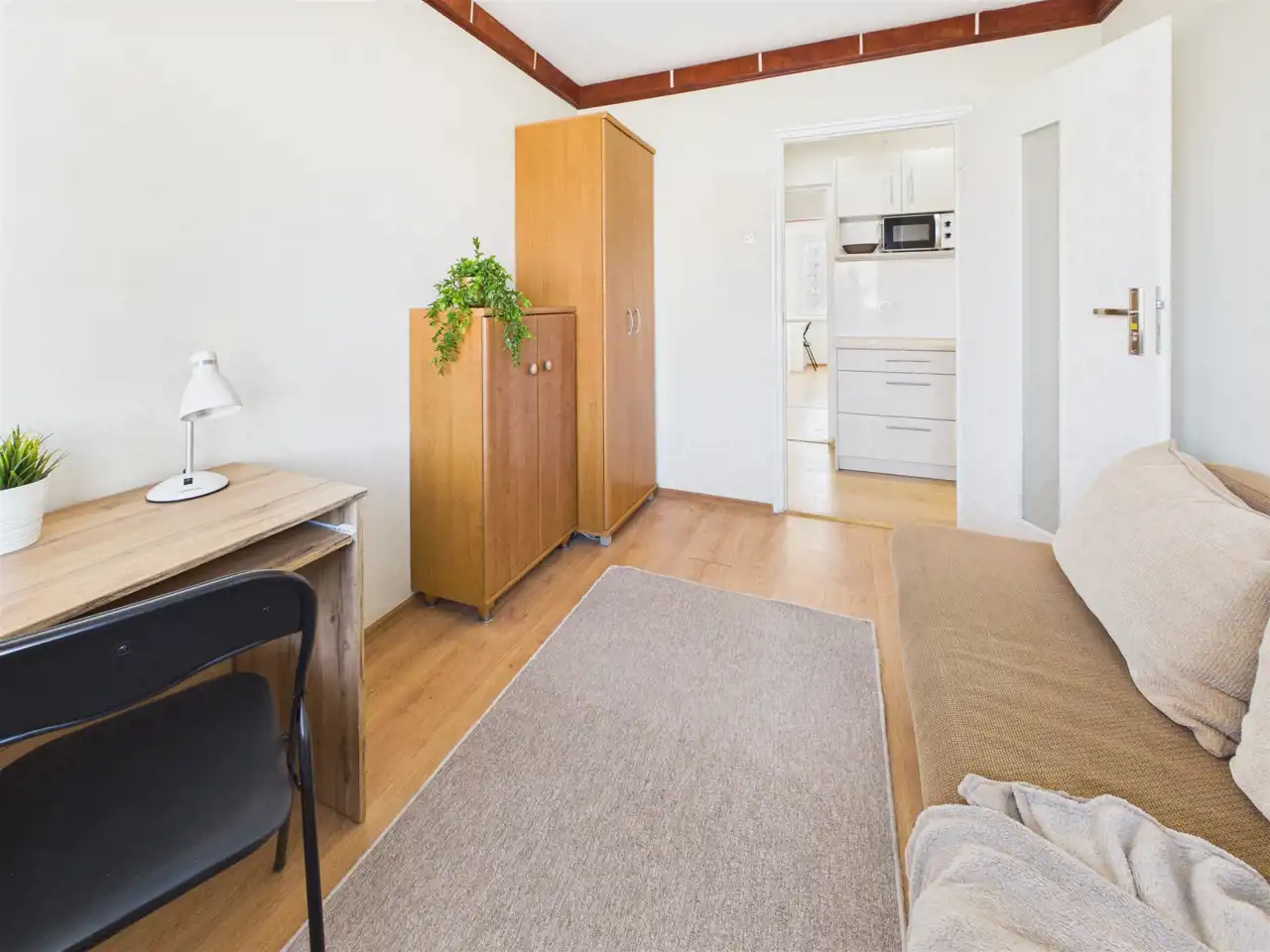 Układ uzupełnia oddzielna, urządzona kuchnia z zabudową, łazienka w ponadczasowej bieli oraz osobne WC – rozwiązanie szczególnie wygodne przy większej liczbie mieszkańców. W mieszkaniu wymieniono okna oraz położono panele podłogowe. Ściany wymagają odświeżenia, co daje możliwość nadania wnętrzu własnego stylu bez konieczności przeprowadzania kosztownego remontu generalnego.