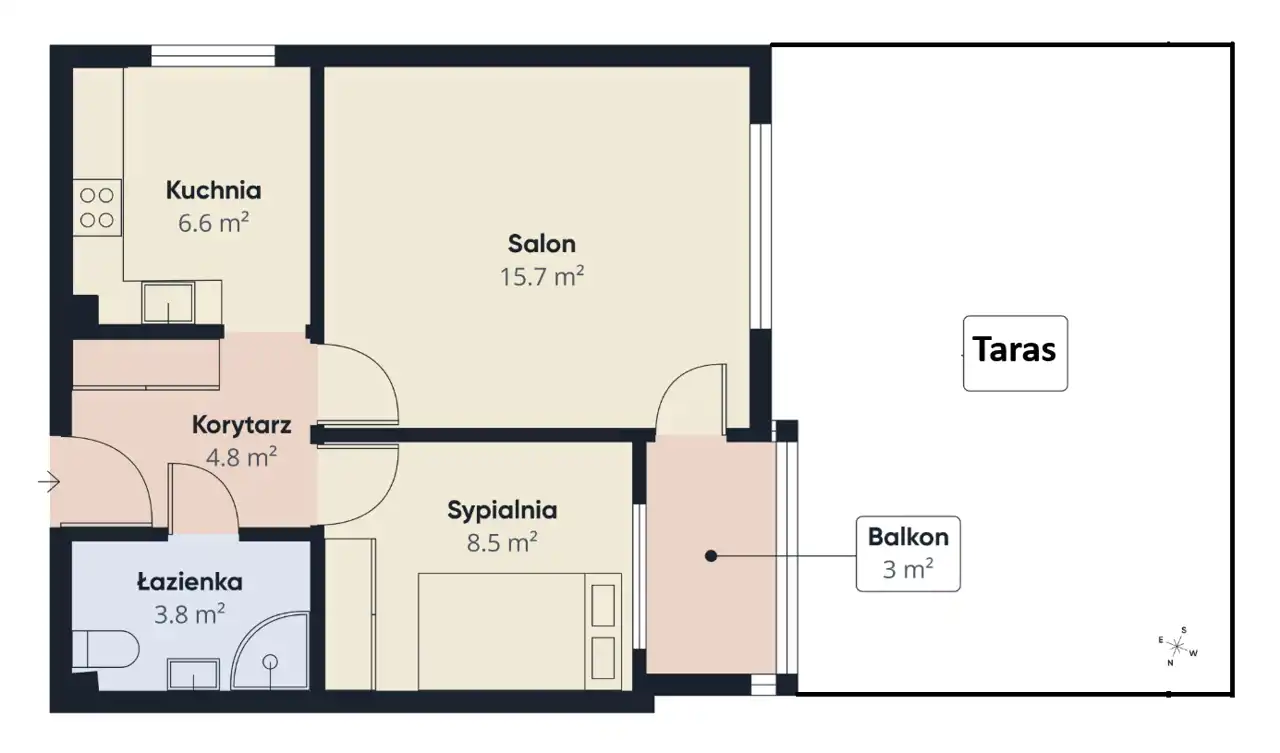 - Charakterystyka mieszkania 39.4 m2, 2 pokoje