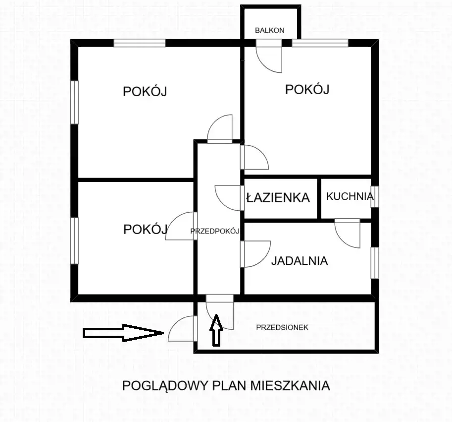 - 3 oddzielne pokoje, kuchnia, spiżarnia, łazienka, przedpokój, balkon,
