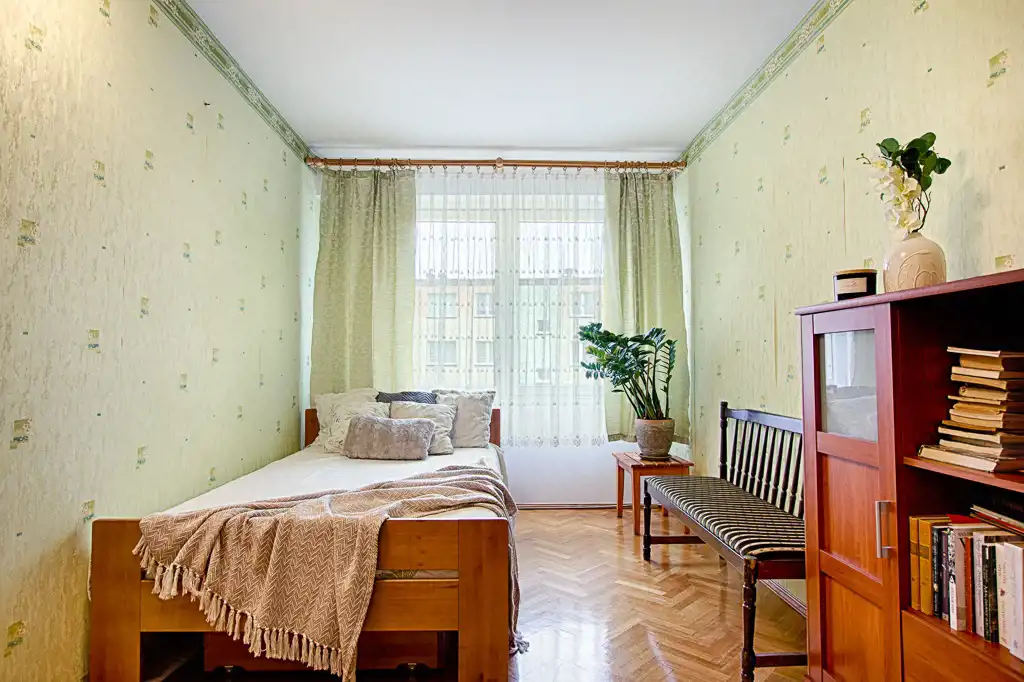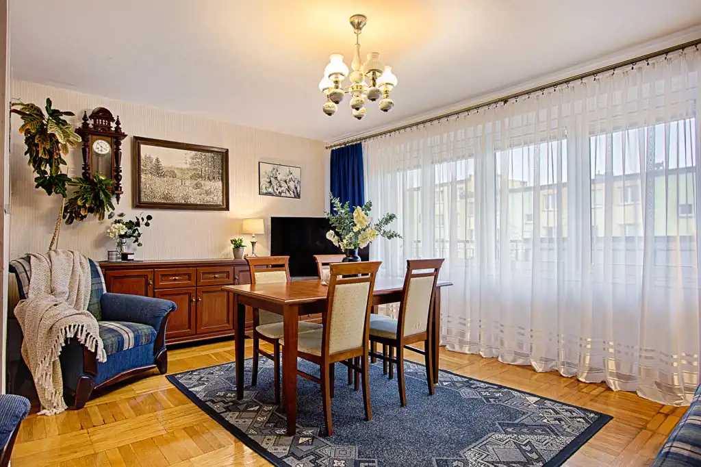 Mieszkanie jest dwustronne, słoneczne - ekspozycja wschód-zachód, posiada przechodni układ pomieszczeń. Nieruchomość wymaga odświeżenia lub remontu - daje to możliwość indywidualnej aranżacji wnętrz.