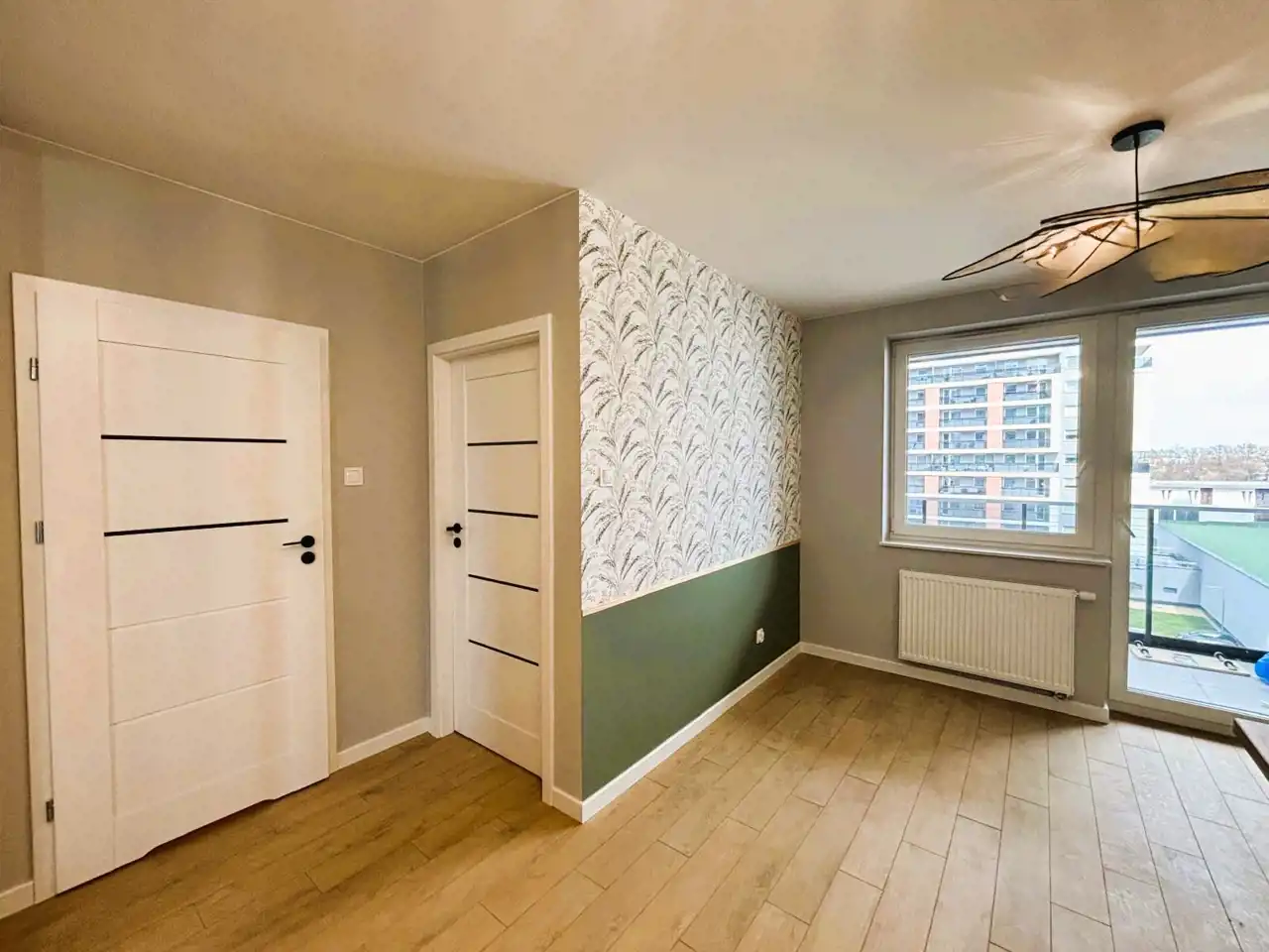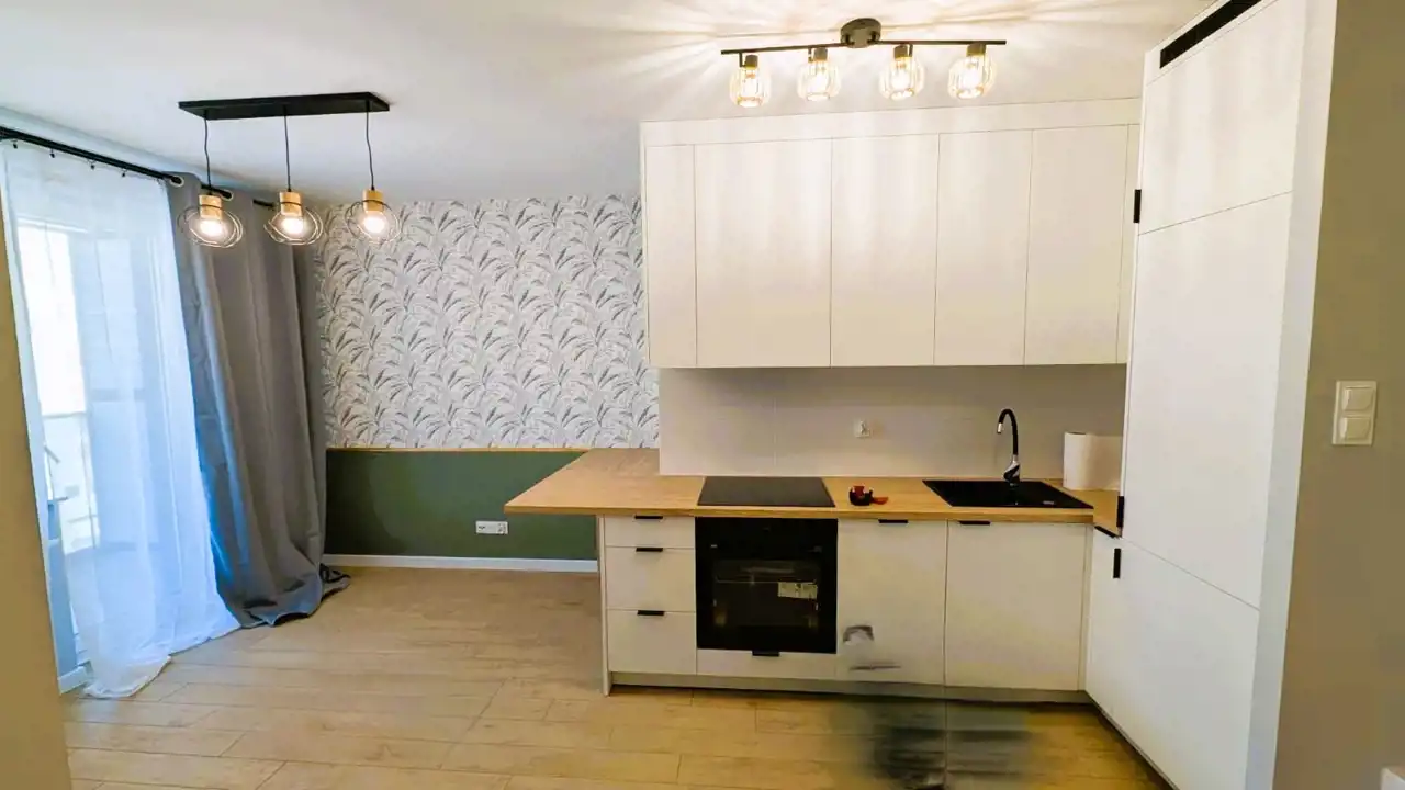 - salon z aneksem kuchennym i wyjściem na balkon