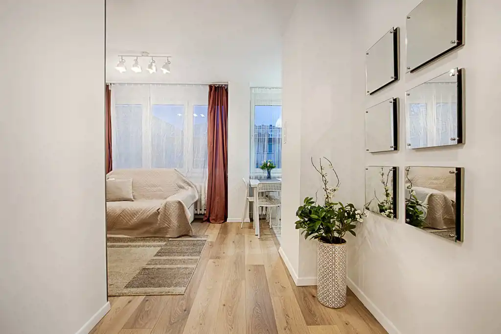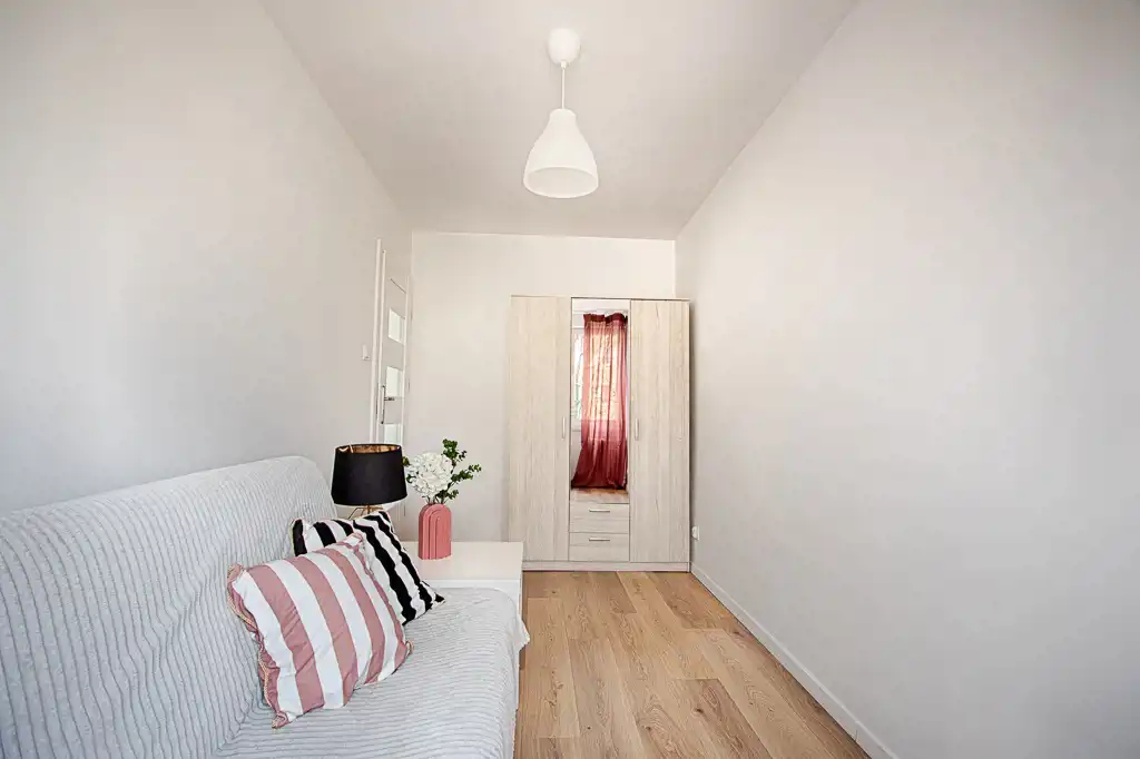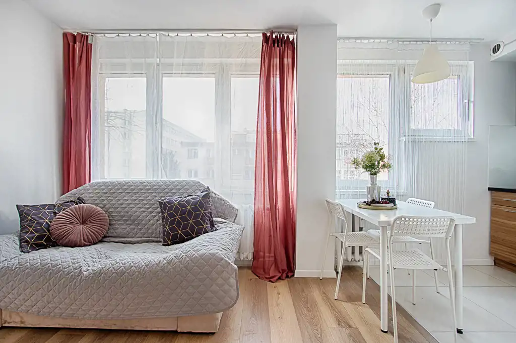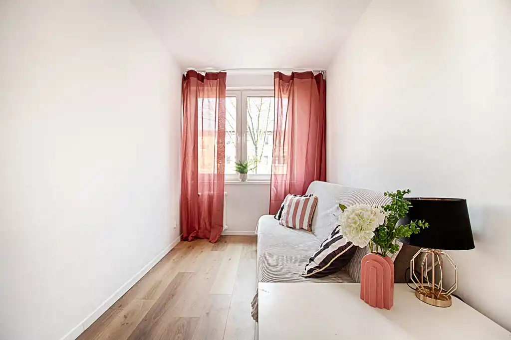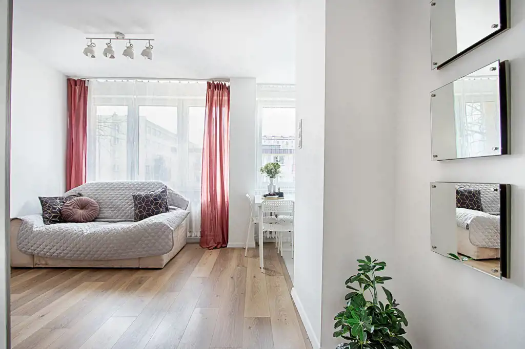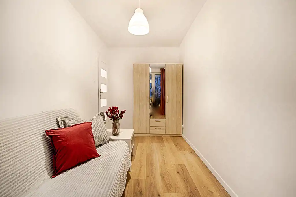 Mieszkanie jest ustawne i ma wygodny, dwustronny rozkład pomieszczeń.