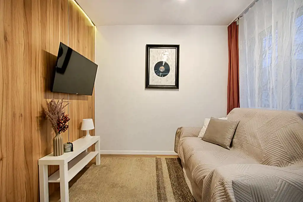 Wnętrza po generalnym remoncie około 5 lat temu, podczas których były wymianie instalacje elektryczne i hydrauliczne. Gotowe do wprowadzenia. Na podłogach gres oraz klasyczny panel, ściany malowane. Nowoczesne oświetlenie oraz funkcjonalne zabudowy stałe w kuchni i łazience.