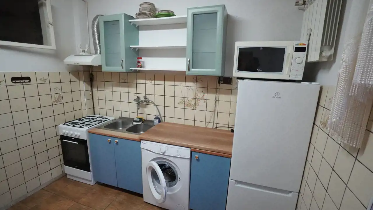 W cenie mieszkania zostają zabudowy stałe, meble oraz sprzęt AGD: lodówka, pralka (wszystko widoczne na zdjęciach).