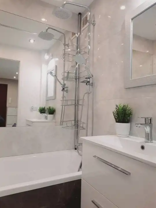 Mieszkanie jest w bardzo dobrym stanie technicznym – wysoki standard, dwustronne. Wnętrze wykończone zostało drogimi materiałami wysokiej jakości. W kuchni, łazience i w przedpokoju - podwieszany sufit z halogenami.