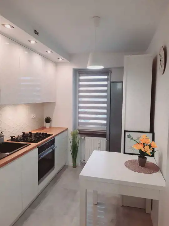 W cenie mieszkania zostaje zabudowa kuchenna, zabudowa typu Komandor w przedpokoju, meble oraz sprzęt AGD: lodówka, zmywarka, kuchenka gazowa, okap (wszystko widoczne na zdjęciach).