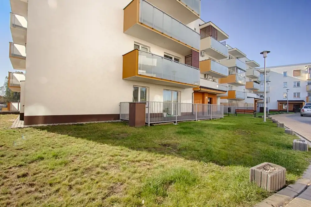 Lokal o powierzchni 45,73 m² znajduje się na parterze w budynku z 2025 roku, wyposażonym w windę. Wnętrza w stanie deweloperskim dają możliwość swobodnej aranżacji zgodnie z własnymi potrzebami i gustem. W skład mieszkania wchodzi:
