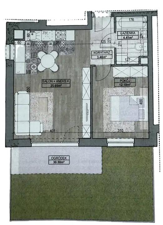 - ogródek (30,50 m2).