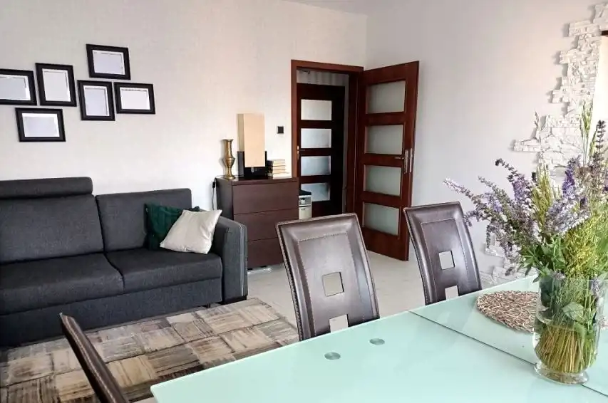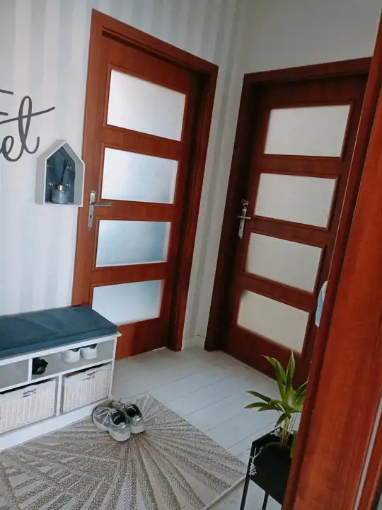 Mieszkanie jest dwustronne, jasne i ustawne. Urządzone w przyjemnej, ciepłej kolorystyce. Starannie dobrane materiały i spójne wykończenie tworzą wnętrze, w którym od razu można poczuć się jak u siebie.