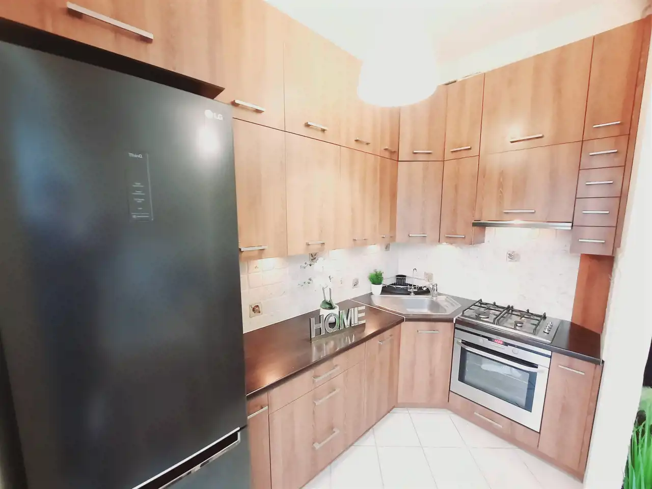 W cenie mieszkania zostaje zabudowa kuchenna, zabudowa typu Komandor w pokoju i przedpokoju, meble oraz sprzęt AGD i RTV: lodówka, pralka, zmywarka, telewizor, kuchenka gazowa, okap (wszystko widoczne na zdjęciach).