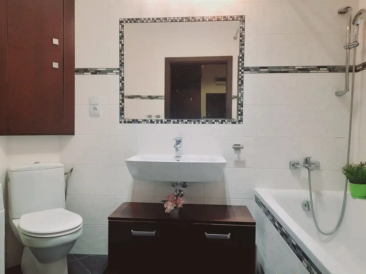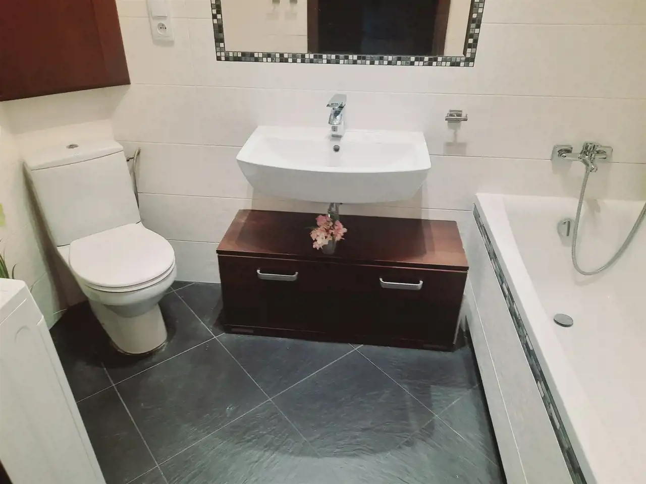 Apartament jest w bardzo dobrym stanie technicznym – wysoki standard, środkowy. Wnętrze wykończone zostało materiałami dobrej jakości.
