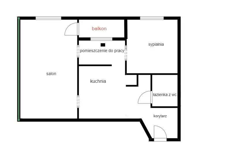 Mieszkanie składa się z salonu, kuchni, sypialni i łazienki z wc.