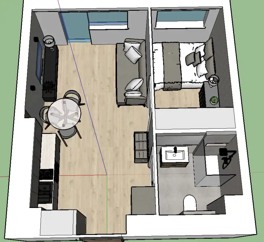 - Charakterystyka mieszkania 36 m2, 2 pokoje