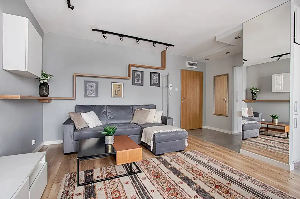 Wnętrza wykończone w bardzo dobrym standardzie oraz spójnym, nowoczesnym stylu. Wyposażone w funkcjonalne zabudowy stałe oraz meble ruchome. W kuchni i łazience niezbędny sprzęt AGD tj. lodówka z zamrażarką, płyta indukcyjna, piekarnik, okap, zmywarka, pralka. Mieszkanie gotowe do wprowadzenia lub wynajmu w celach inwestycyjnych.
