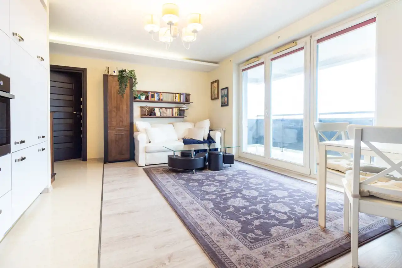 Rozkład pomieszczeń oraz duże okna zapewniają piękne nasłonecznienie mieszkania.