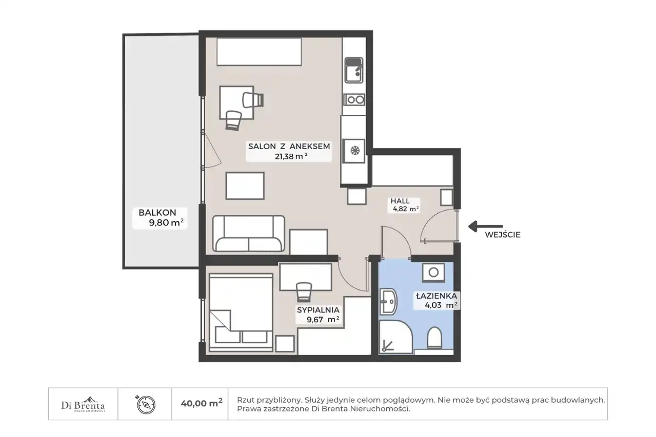 - Charakterystyka mieszkania 40 m2, 2 pokoje